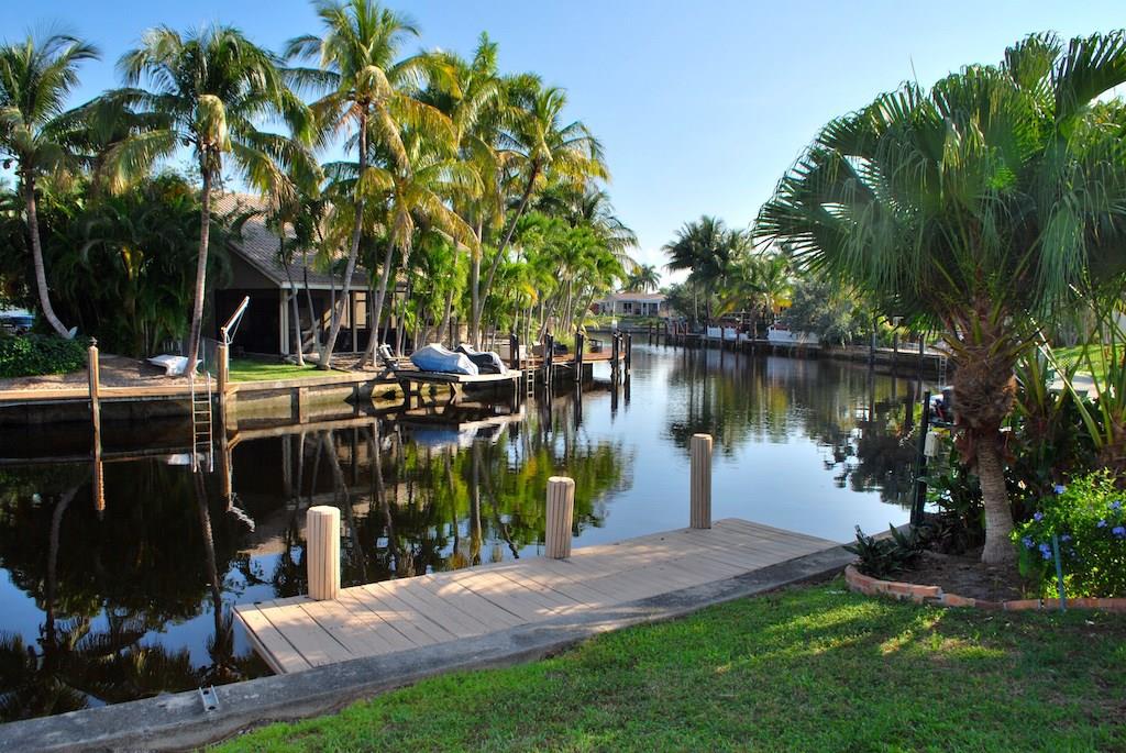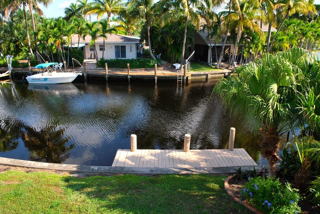 2-story waterfront home in Cypress Harbor. Over 2,000 sq ft living area with open floor plan on ocean access canal via 2 fixed bridges. Newer tile roof and Air Conditioning units. Master suite on 1st floor with adjoining office. Kitchen with stainless appliances overlooks huge living room and family room. Two bedrooms upstairs. Walk out roof-top deck from bedroom with views. Chicago brick patio off Family Room overlooks landscaped back yard and canal. Endless potential turning this gem into a dream home.