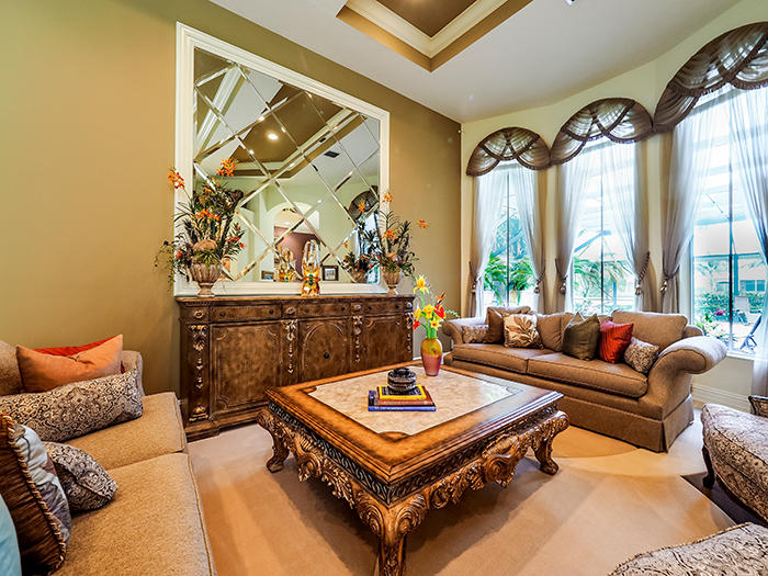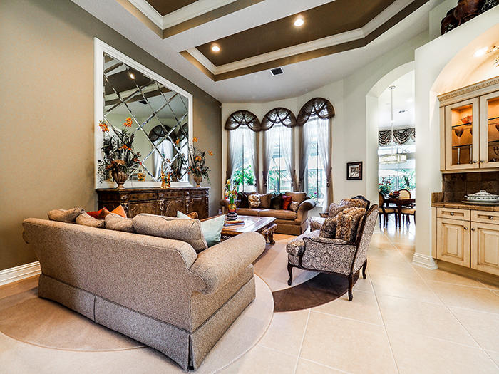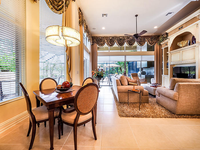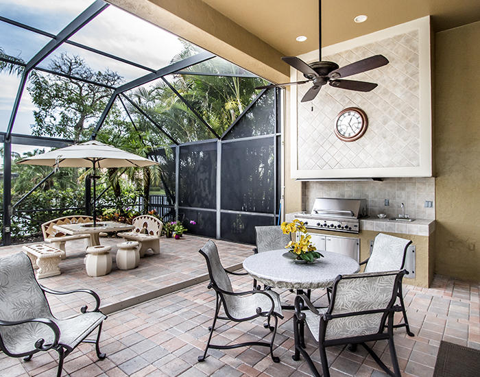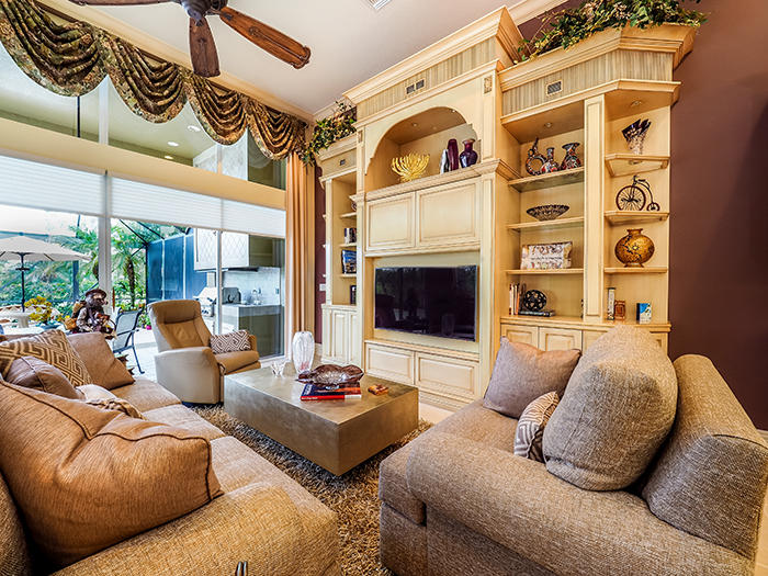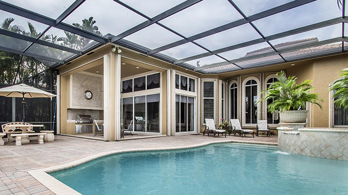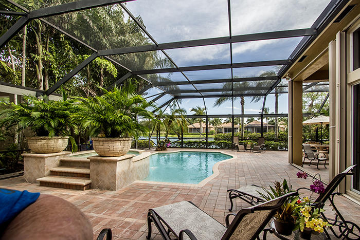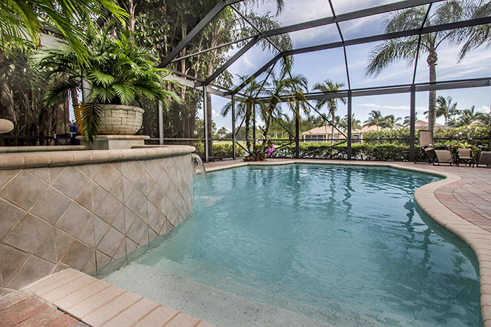 Unsurpassed value in Tradition Cove for this exceptional 4BR/4.5 BA+Den with full screen enclosure in oversized pool and spa area, Southern exposure with water and golf vistas overlooking the seventh green of the Tradition course. Elaborate summer kitchen, gourmet kitchen, newly resurfaced pool, Accordian shutters, impact glass in some upper windows,new dishwasher and water heater. Designer touches, fixtures and appointments throughout this 3400 square foot home located on a premium cul-de-sac lot. Extensive moldings and faux finishes, built-ins, granite, stainless appliances, custom dry bar in living room, full-size wine refrigerator and much, much more.Newly painted inside,sound system in all main rooms and patio area.An incredible value!
