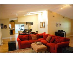 This lovely, bright, large 4 Bedroom 3 FULL bath home has vaulted ceilings, Beautiful wood floors and neutral tile in the living areas, lovely large updated kitchen; gorgeous pool area with TWO cabana baths, BONUS Sports Court AND a Large Backyard.