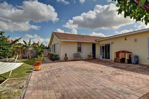 Fenced spacious back-yard with pavers & fruit trees. Barwood Estates is one of West Boca's best kept secrets. 4 Beds, 2 baths, 2-car garage with Lots of living spaces: Living room, dining room, family room and eat-in-area. Split floor-plan. Two closets in the master, including walk-in. Jacuzzi tub in master bath. Kitchen with Granite countertops & stainless still microwave & dishwasher (both 3 year old). 2007 Outside A/C unit . Owner says Roof was replaced around 2005/2006. House is wired for alarm system. 2 Y old water heater. Accordion Shutter. Laminate wood and tile floors throughout. Spacious driveway for 2+ cars. Full washer & dryer plus sink & built-in cabinets in the garage *** Owner occupied / easy to show. Call now to schedule! ***DRAPERY RODS & CURTAINS DO NO CONVEY***
