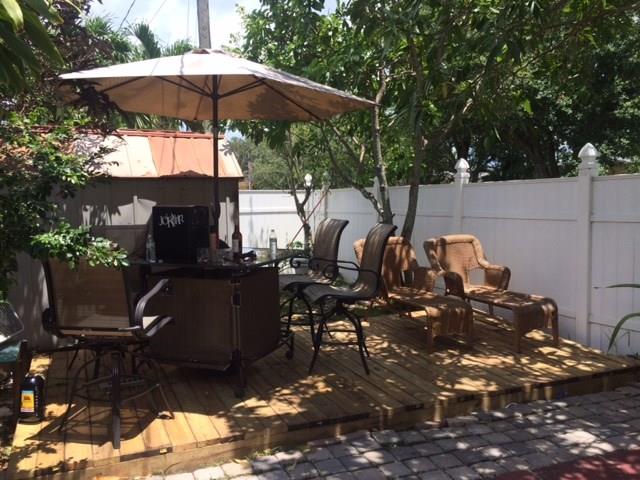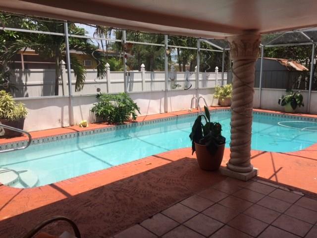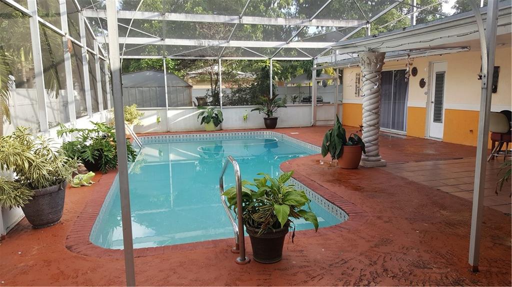 This adorable 3/2 home is located on a corner lot in a desirable neighborhood of East Miramar. The well maintained home features a large screen enclosed salt water pool and patio area as well as additional outdoor space with a deck surrounded by mango, lychee and avocado trees. The house is also surrounded by beautiful white privacy panel fencing. A converted air conditioned garage provides extra space for an office, gym or family room. Must see!