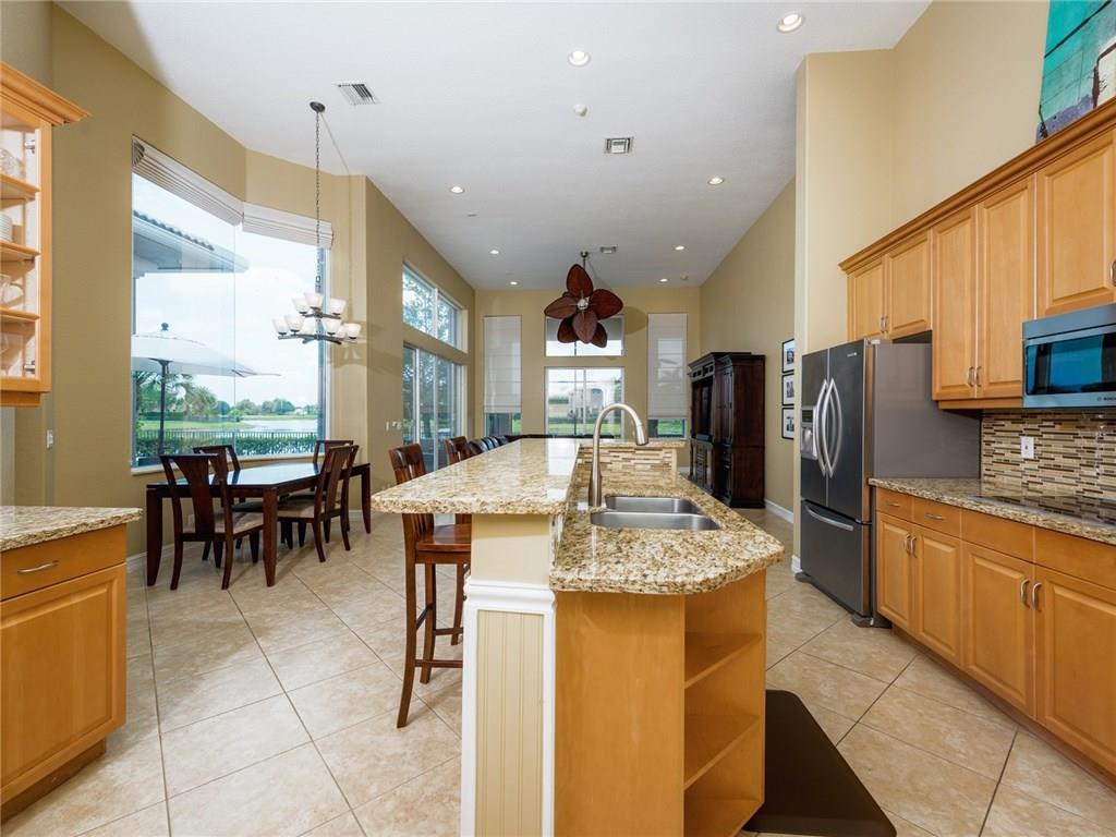 BEAUTIFUL LAKE VIEWS! Come and see this true 5 bedroom, 3 car garage, triple split floor plan. One story POOL home on a great lot. Open floor plan, big bedrooms, HUGE screened in patio, & lots of yard space to play. Custom built in bar area in living room can stay or go. Wood Tile, built ins, accordion shutters, large laundry room, snack bar, 2 walk ins in Master and WIDE LAKE & GOLF VIEWS !!! Move right into this wonderful home in THE VISTAS in Heron Bay.