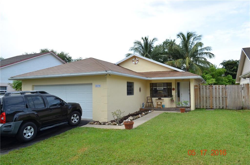 A fantastic opportunity to own a home in Davie. 3 bed/2 bath, exterior and bedrooms freshly painted, ceramic tiles throughout, kitchen with wood cabinets, appliances in good condition. Spacious living room and dining areas. Bathrooms tiled using neutral c olors. Well manicured lawn, serene backyard, tiled patio. Home is in excellent condition and has been meticulously maintained! A rated schools, low HOA fees.