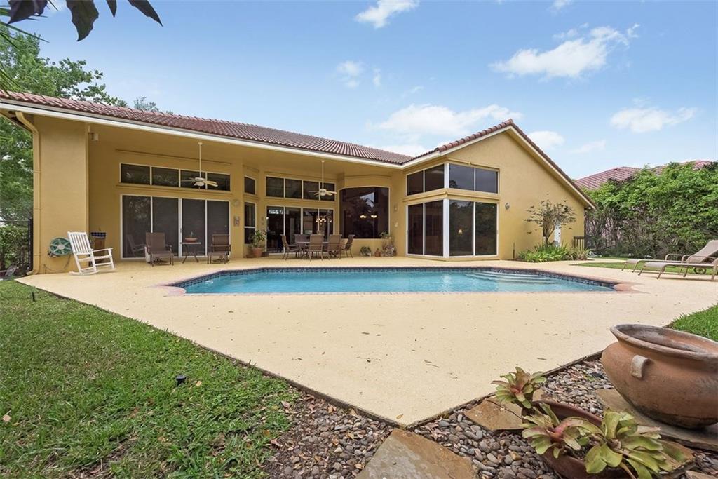 What a Great 5 bed 3.5 bath home with over a 1/3 acre interior lot. 5th bedroom is an office near the master w/no closet.Newer Roof & kitchen, Triple split floor plan volume ceilings. 8 ft Real Wood Doors throughout. The kitchen is large & upgraded with gorgeous granite & stainless appliances. There are also 3 A/C zones replaced 2007, 2012 & 2013. The back yard is huge & fully fenced.3 car garage, Large pavered driveway & hurricane shutters make for a complete package. Did I say Immaculate !!