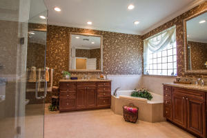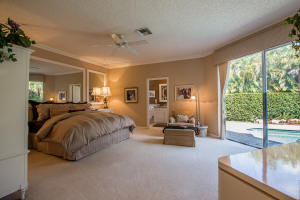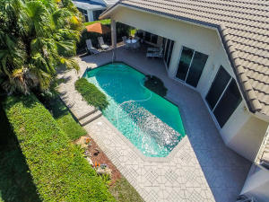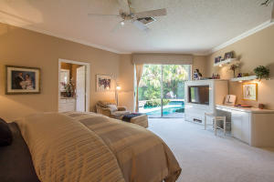 Beautiful one story, private pool home. Very open and spacious. Private back yard with easement behind the pool. High ceilings, crown molding, recessed lighting and lots of natural light. Formal dining area used as a family room. Granite counters in kitchen with breakfast bar and eat-in area. Spacious master bedroom features sitting area, view of pool and HUGE walk-in closet with built-ins. There are two full baths for the master.One features a jetted shower,separate Roman tub and double granite vanities. Second master bath has stand alone shower, granite counters and doubles as cabana bath. Second bedroom features arched windows. Third bedroom can be used as den or office and share a Jack and Jill bathroom. See addendum for more info.