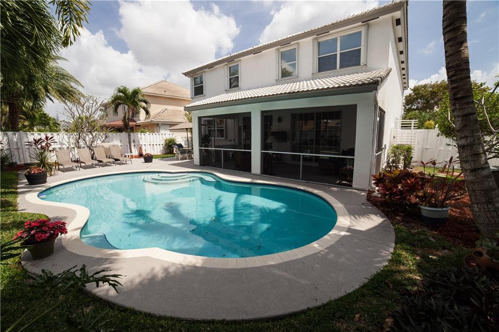 GREAT price for an amazing 5 bed 2.5 bath heated pool home in gated Pembroke Shores. GOURMET kitchen w/granite counters, solid wood cabinets, island & SS appliances. Spacious family room w/office or possible bedroom space. Wood floors, 2-AC units. Oversized bedrooms w/large walk-in closets. Double door entry to private master, tray ceiling. Freshly painted interior. Roofed/screened patio lounge overlooking tropical pool great for entertaining! QUICK closing okay!