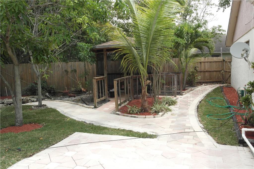 This is a rare opportunity to own a beautiful 3/2 home located on a large lot tucked away in a quiet Cul de Sac in a desirable East Miramar neighborhood. This model home is suited for a family who loves to entertain. Large yard, large pool and a canopy of palm, coconut and mango trees as well as 2 gazebos and wet bar. Large Driveway has new pavers. Includes appliances and unique Central Vacuum feature. Walking distance to elementary school and supermarkets with quick access to the FL Turnpike and I-95.