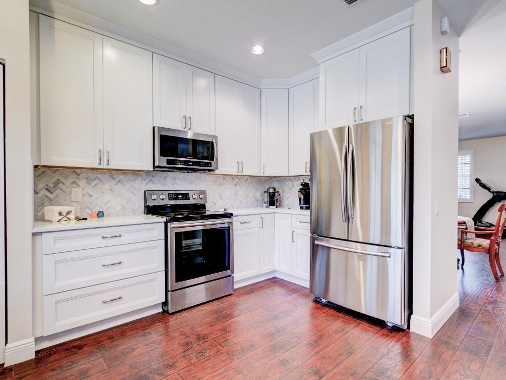 This 5 BR 4 Bath Pool home includes Lakefront Location with beautiful upgrades throughout. Complete Brand New Kitchen, Extended Cabinetry Corner Lazy Susan, Quartz Countertops, Stainless Appliances. Large Planked Premium Grade Laminate Wood Flooring thru-out. Plantation Shutters, Customized Walk-in closets, Complete Interior Freshly Painted, Newer Dual Zone A/C's. Open Salt-water Pool w/extended pavered patio. Backyard Fenced. Two-Car Garage extended pavered driveway. Move-In Ready. Weston A+ Schools.