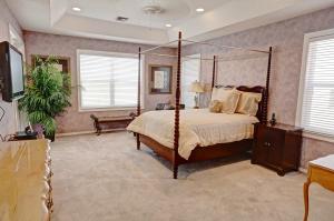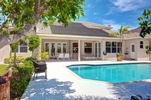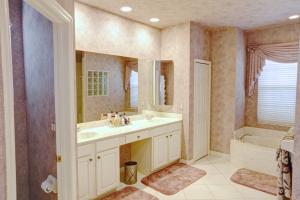 RESORTLIKE LAKEFRONT SAN FRANCISCO MODEL OVERSIZED 32X18 SOLAR HEATED POOL 5 BDRM,3 FULL BATH+CABANA 1/2BATH FROM FAMILY ROOM TO POOL PATIO,13' VOLUME CEILINGS AT ENTRY, GOURMET KITCHEN W/ GRANITE COUNTERTOPS W/ UNDERMOUNT SINK PLUS LIGHT CABINETS W/CROWN MOLDINGS,WINE RACK, ALL FRENCH DOORS OUT TO POOL AREA NO SLIDERS,LIGHT CERAMIC TILE FIRST FLOOR LIVING AREAS,SPACIOUS FAMILY ROOM W/ WALL UNIT,SPACIOUS&PRIVATE FIRST FLOOR MASTER SUITE FROM FRONT TO BACK,2 WALKIN CLOSETS &JACUZZI TUB,SINGLE STORY SIDE OF HOME W/ TRAY CEILING,MANY UPGRADES INCL HIGHHATS, OVERSIZED 80GAL WTR HTD, INTERCOM, REFRIG IN GARAGE STAYS, FRESHLY PAINTED EXTERIOR,LARGE FENCED POOL PATIO AREA,FRAMING AROUND WINDOWS, & JACUZZI JETS IN SWIM OUT