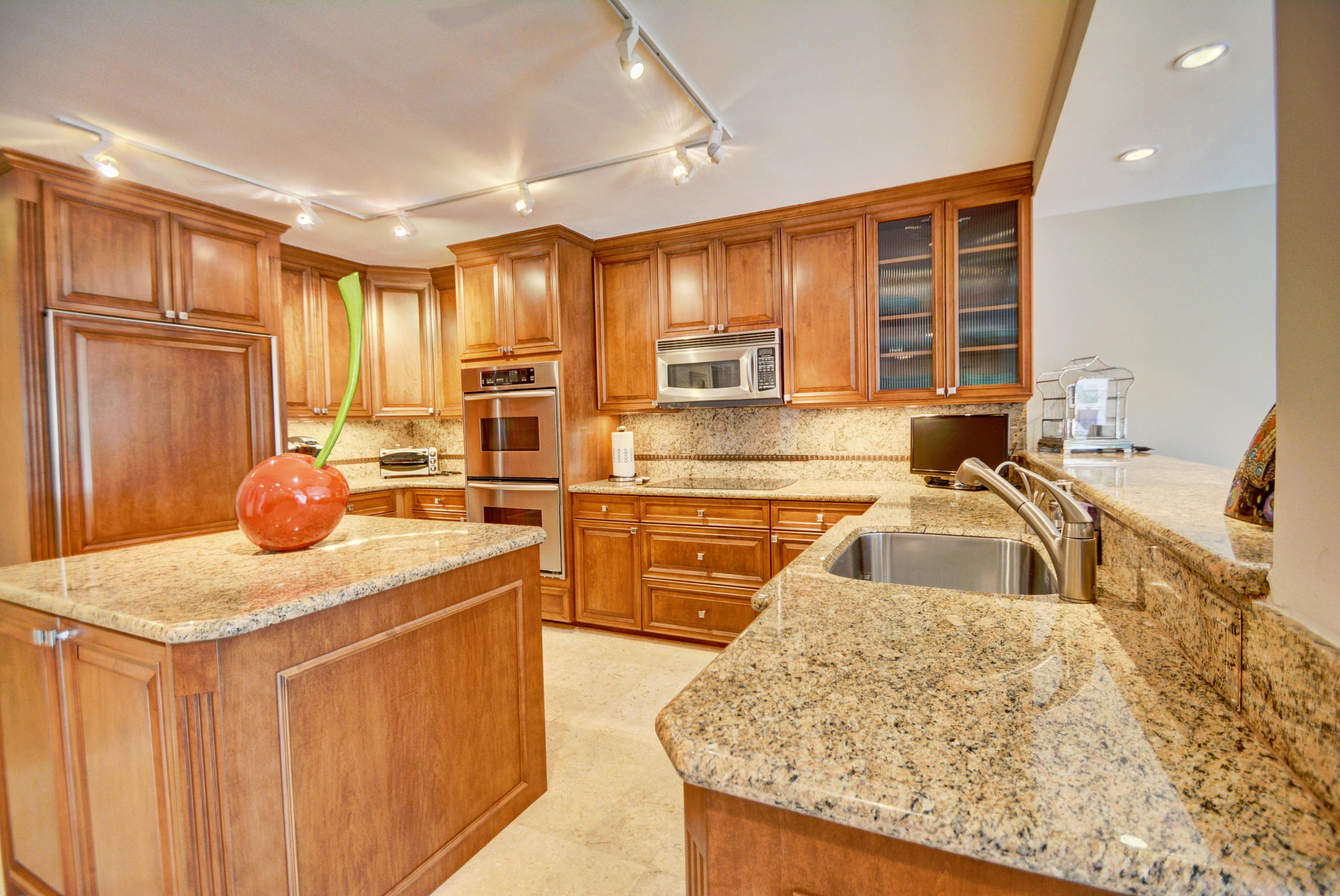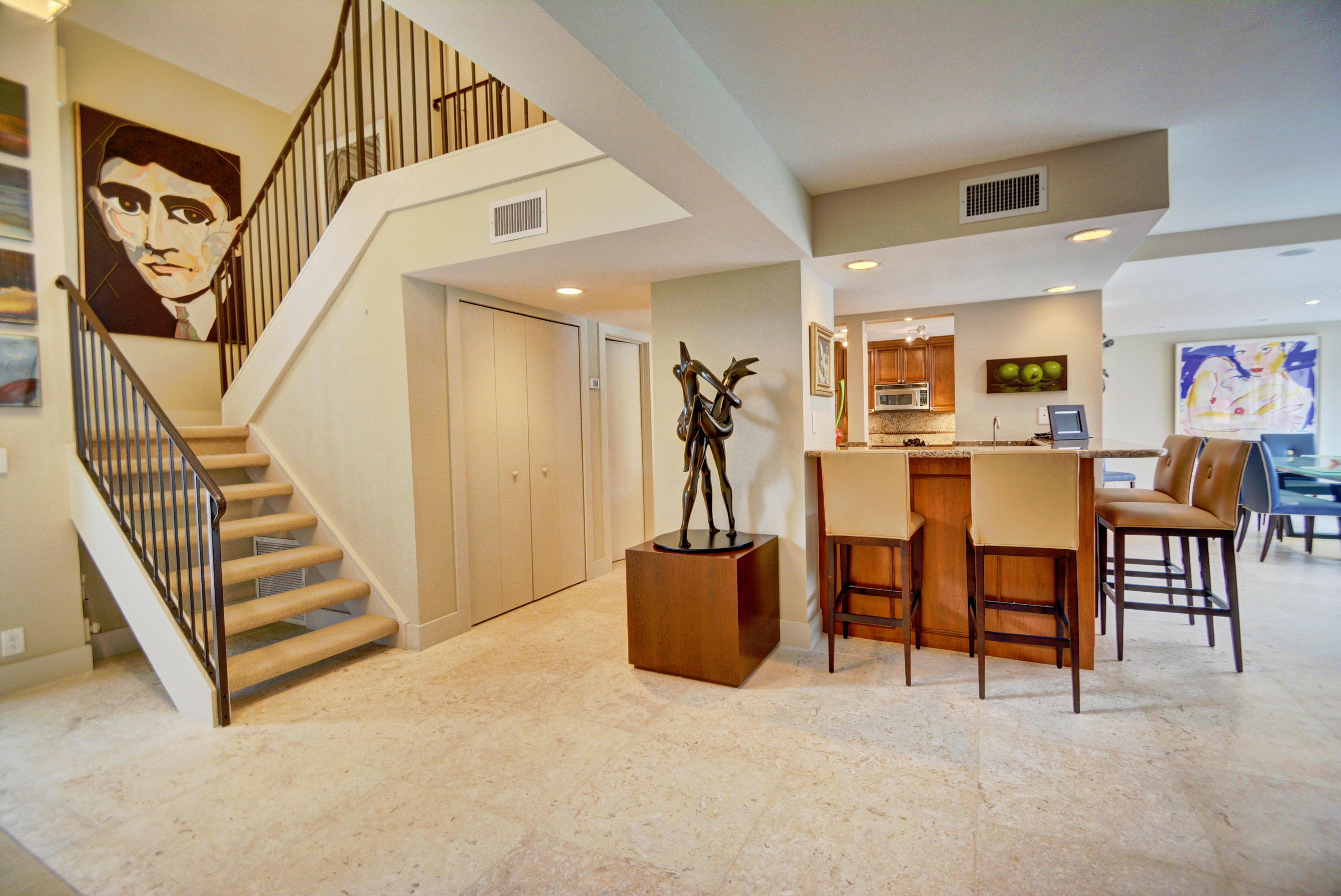 Rare opportunity to live in this spectacular and professionally designed 3 BR, plus office- 3 Full Bath expanded town home. Second floor master bedroom features a separate private office with built-in desk. For your convenience there is an elevator taking you from your garage right into into your own master suite! Gorgeous coral stone walkway that carries through entire first floor and continues on to the patio of your resort style, redone pool and magnificently landscaped backyard. Roof replaced 2015. There is a large hot tub. No detail has been spared! Must be seen! This home is very special-one of a kind. Rarely do you find an interior that complements the beauty of nature. The beautiful water and golf view completes this spectacular home. Mandatory membership of $70,000.