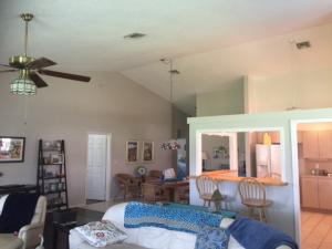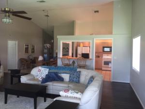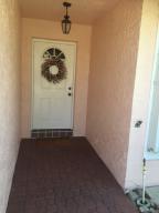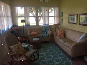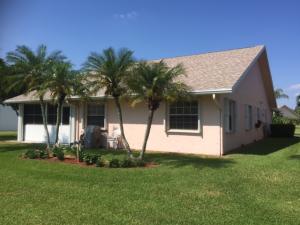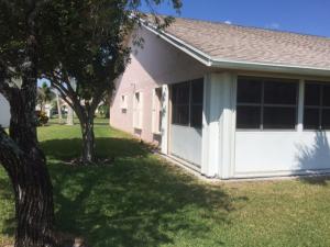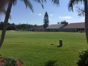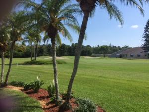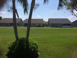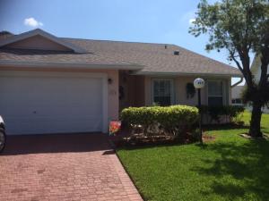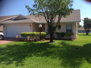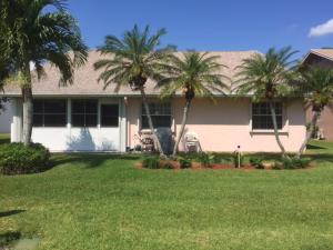 This beautiful move in ready home sits on the 3rd hole of the free executive 18 hole golf course. Accordion shutters, roof 2011, new laminate floors thru living room and bedrooms. Ceramic tile in hallway and kitchen areas. High ceilings thru out, opened up kitchen for entertaining. Freshly painted bathrooms, 6 ceiling fans, enclosed cable ready porch. There are security motion sensor lights on all side walls. The garage has one space available due to small AC'd room for either office or storage. Man or Woman Cave!! Laundry in garage. Brick paved drive way, dogs under 20 lbs welcomed. Golf carts allowed. Gated and patrolled community. One person must be 55+. Just minutes to turnpike, I 95, shopping, outlet mall, beaches and City Place. Clubhouse has men & womens gym, tennis, pool, and more!