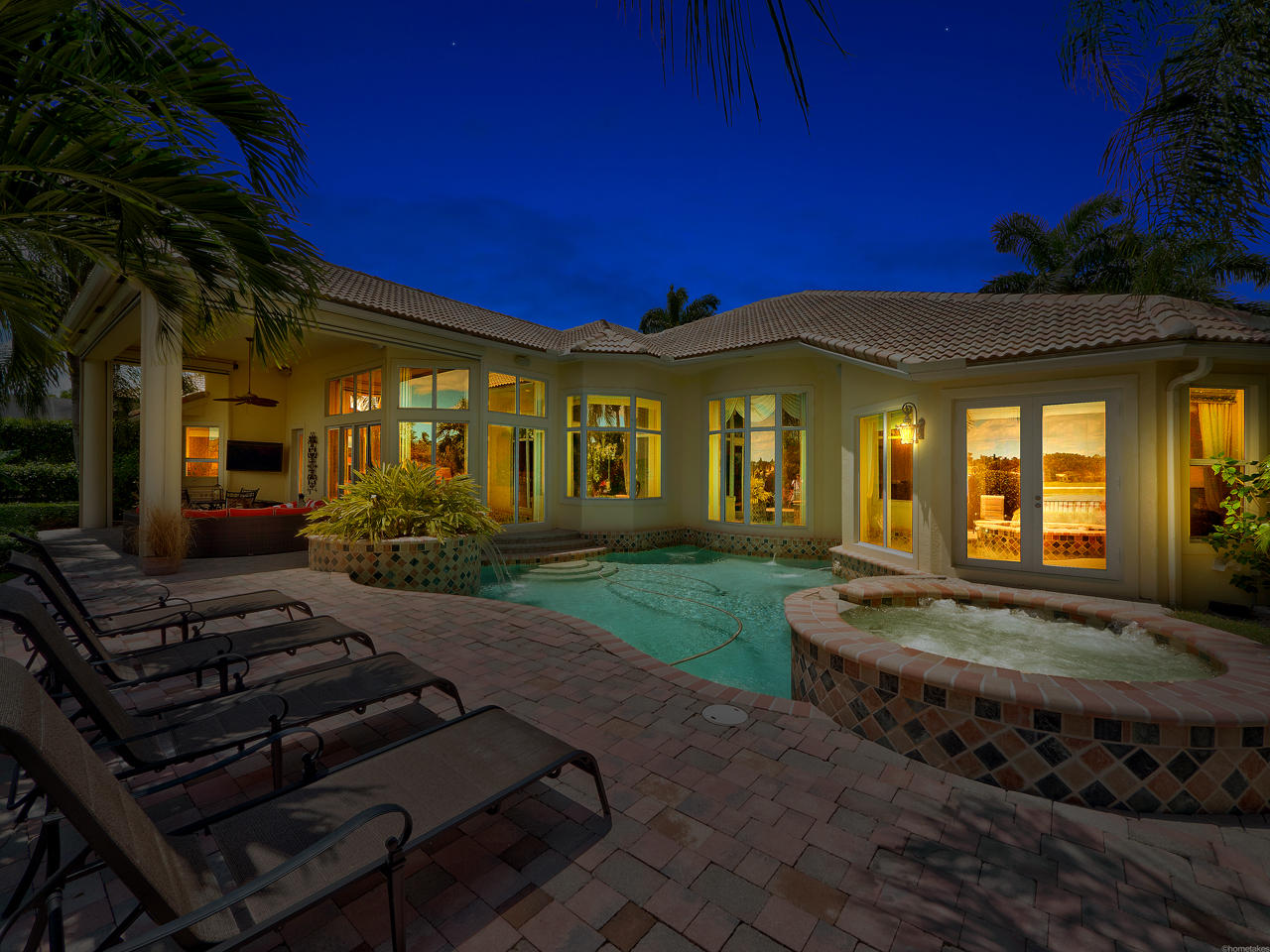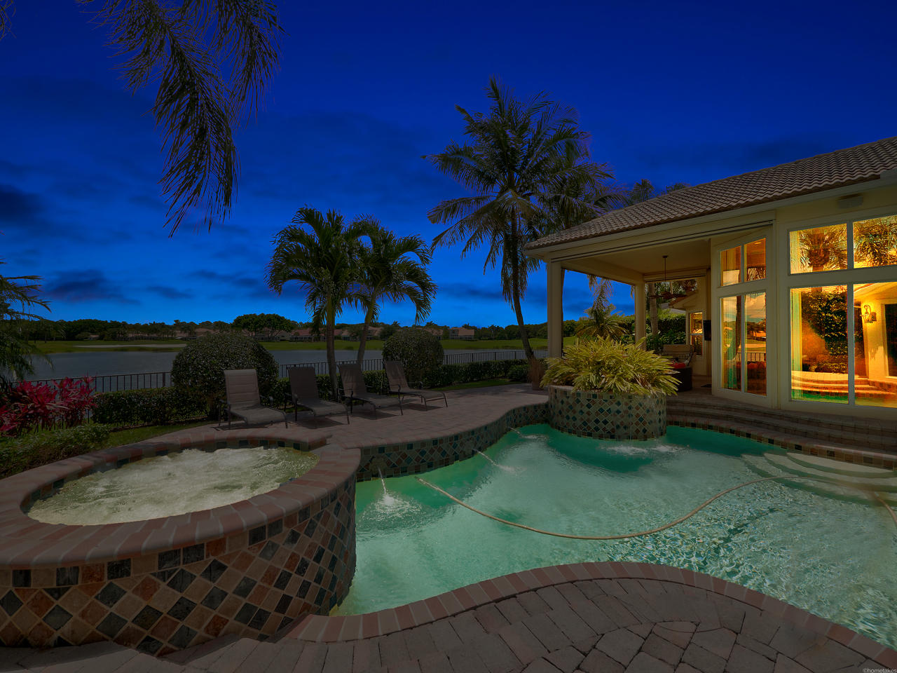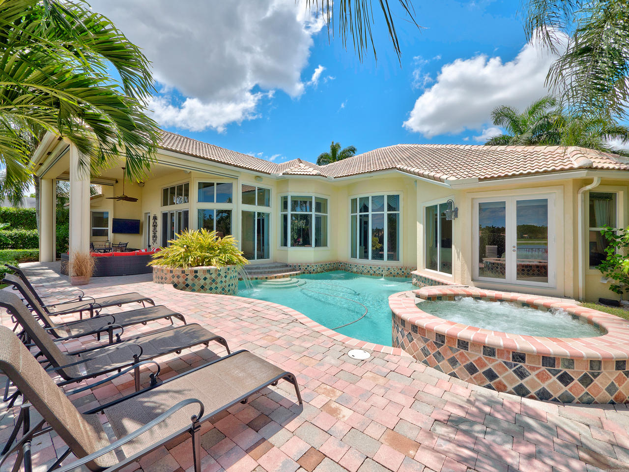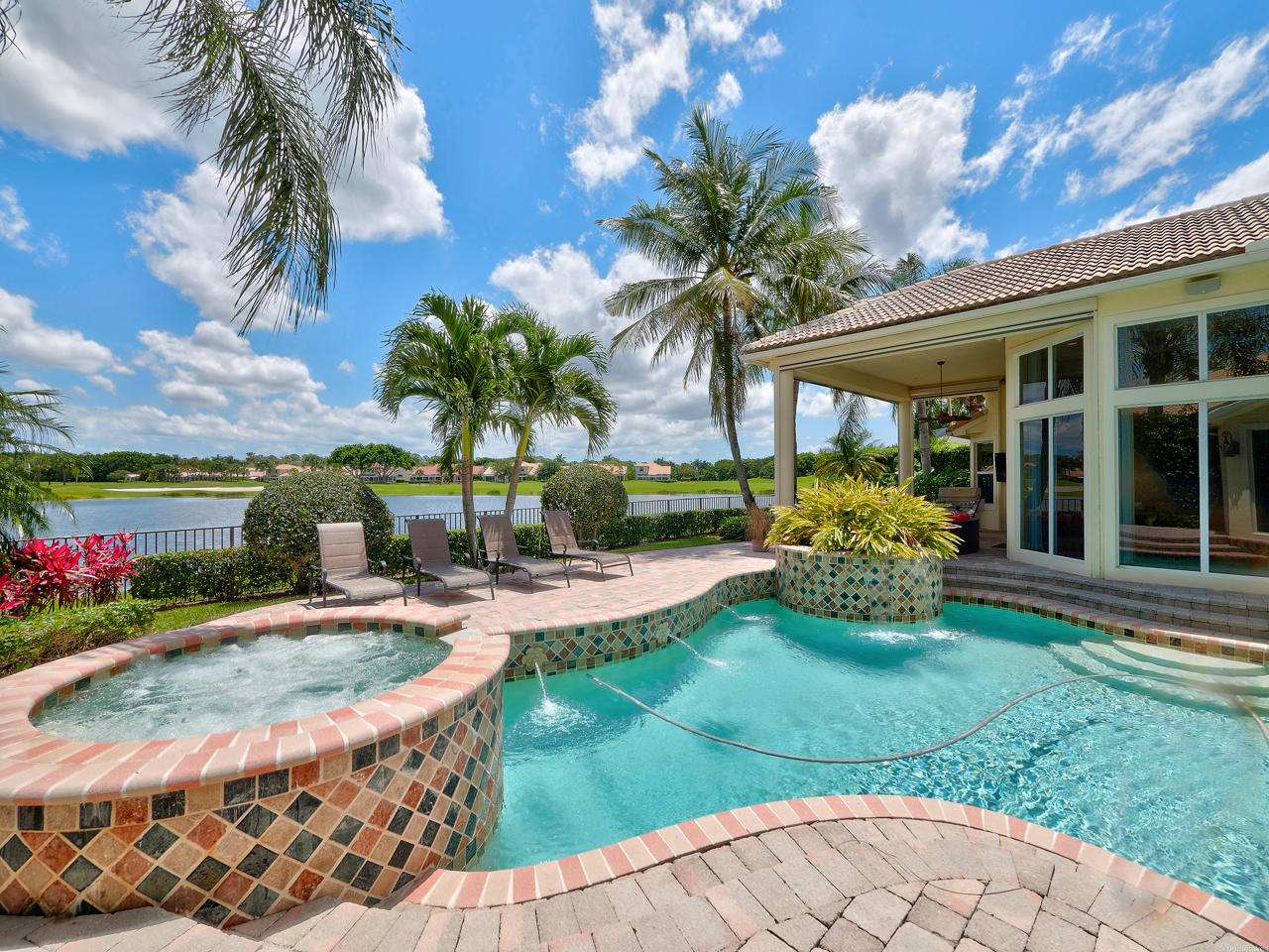 Beautiful upgraded home with gorgeous water & golf views. Impact windows & doors, marble floors with inlays, designer touches throughout & a dramatic pool/spa are just some of the amenities. This estate home is located on the original Premiere Builders street which is arguably the prettiest in Ibis! Pulling into the circular driveway you'll notice the welcoming bougainvilleas . As you approach the front door notice the impressive fountain & wrought iron inserts at the door & experience a breathtaking view of the pool as it overlooks the lake from the front entrance. Once you enter the foyer you can't miss the gorgeous pool, lake & golf view. Additionally the backyard enclosure features open viewing or phantom screens.