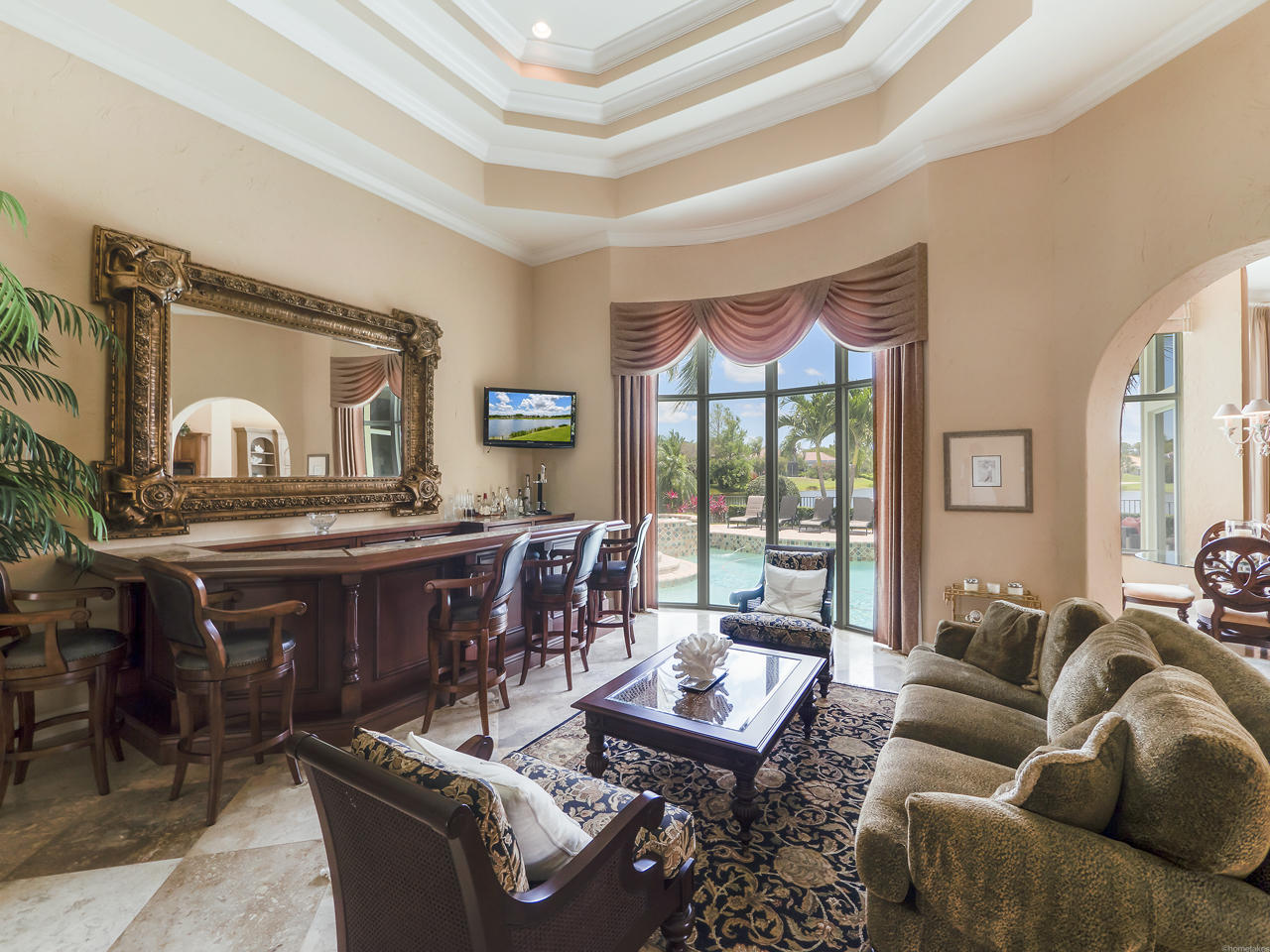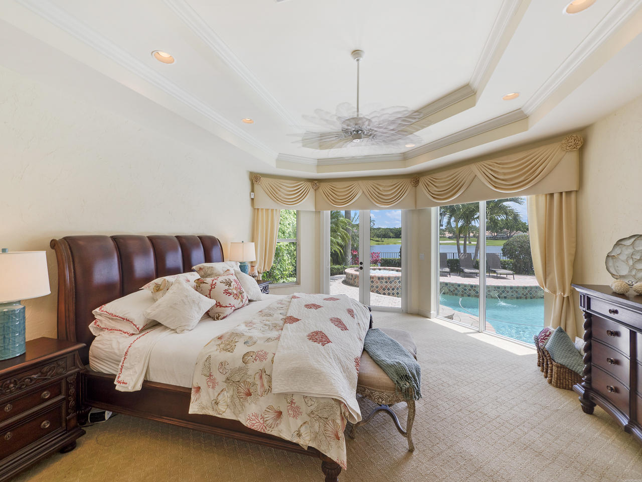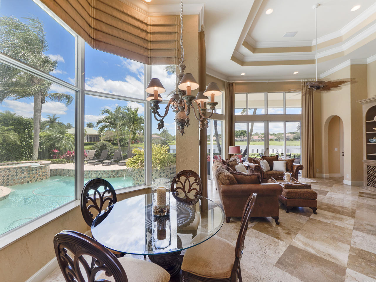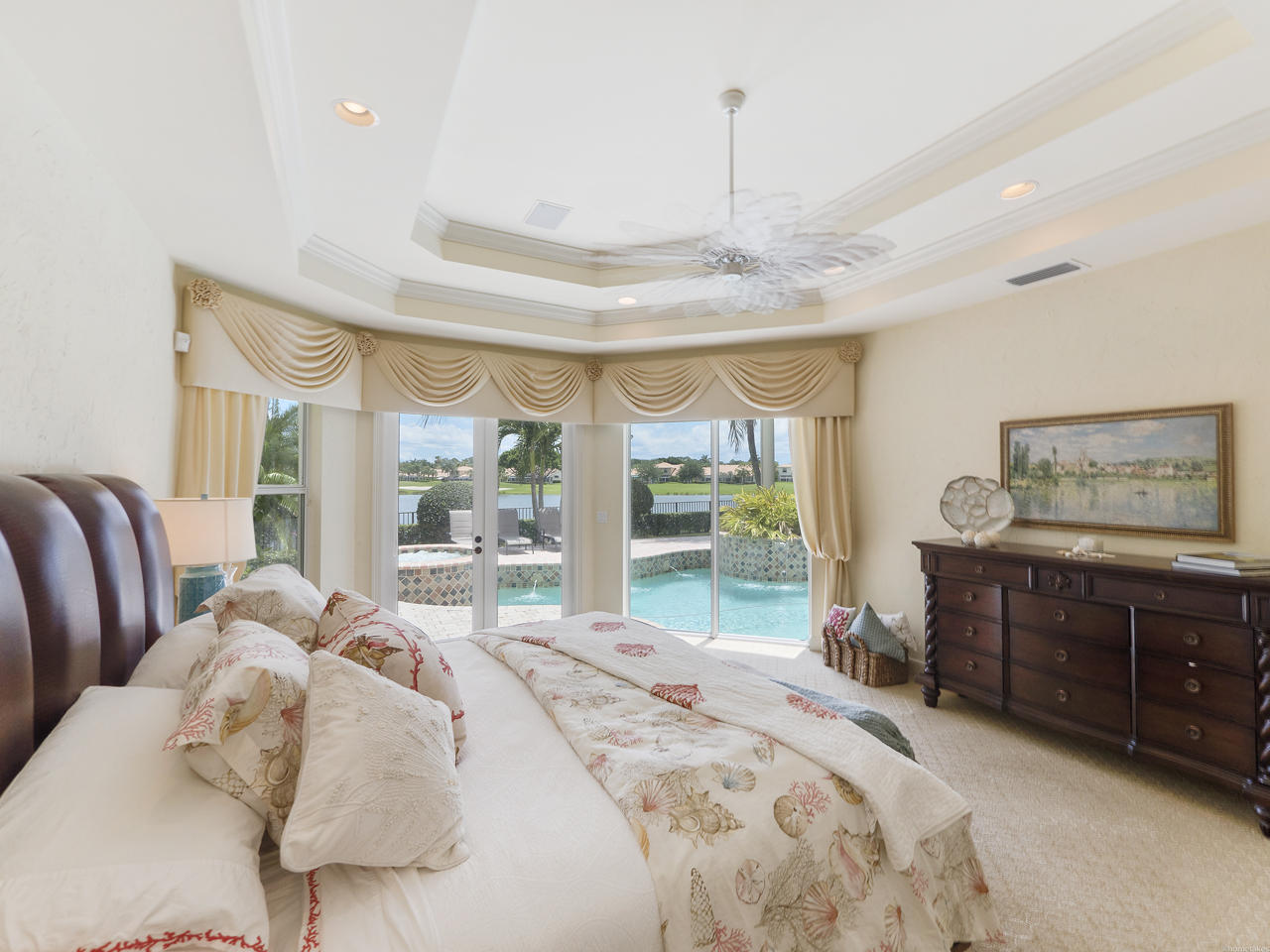 Beautiful upgraded home with gorgeous water & golf views. Impact windows & doors, marble floors with inlays, designer touches throughout & a dramatic pool/spa are just some of the amenities. This estate home is located on the original Premiere Builders street which is arguably the prettiest in Ibis! Pulling into the circular driveway you'll notice the welcoming bougainvilleas . As you approach the front door notice the impressive fountain & wrought iron inserts at the door & experience a breathtaking view of the pool as it overlooks the lake from the front entrance. Once you enter the foyer you can't miss the gorgeous pool, lake & golf view. Additionally the backyard enclosure features open viewing or phantom screens.