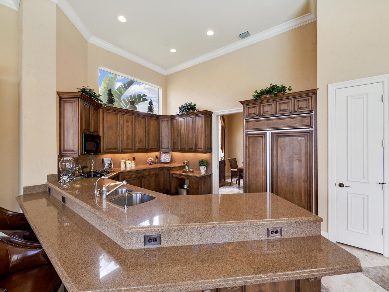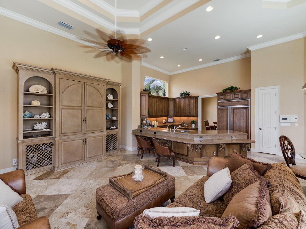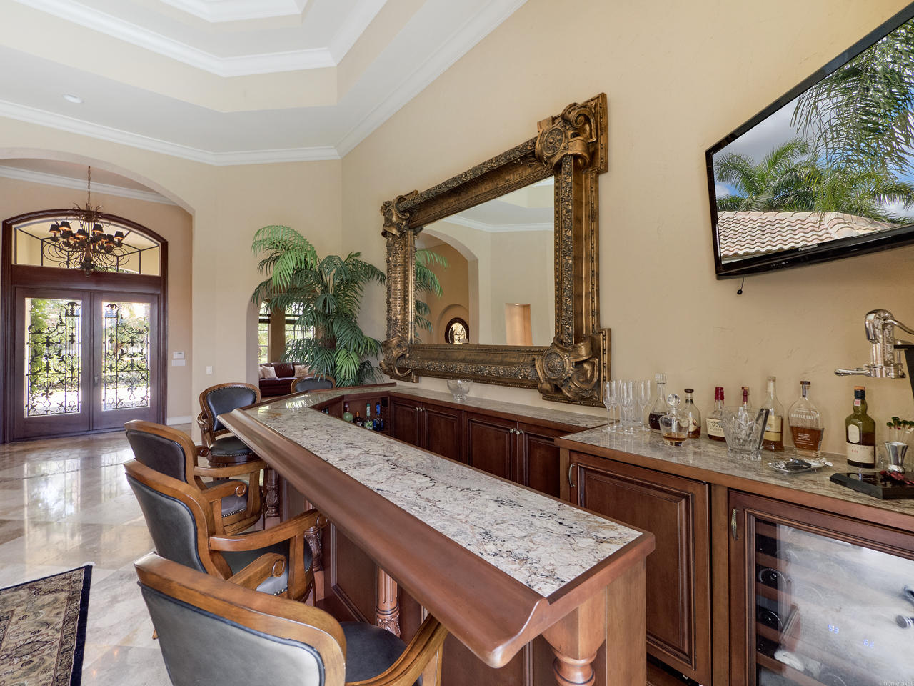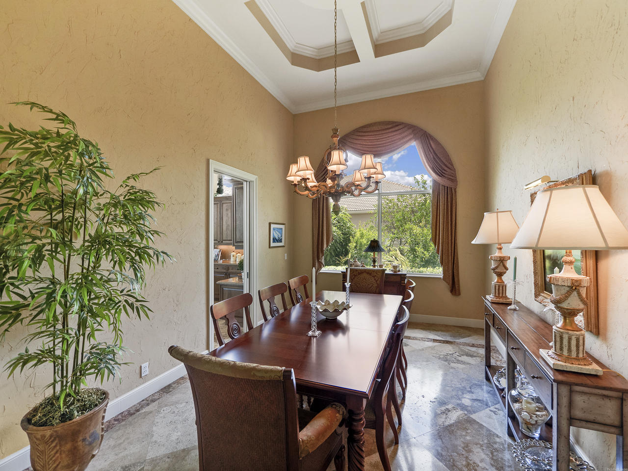 Beautiful upgraded home with gorgeous water & golf views. Impact windows & doors, marble floors with inlays, designer touches throughout & a dramatic pool/spa are just some of the amenities. This estate home is located on the original Premiere Builders street which is arguably the prettiest in Ibis! Pulling into the circular driveway you'll notice the welcoming bougainvilleas . As you approach the front door notice the impressive fountain & wrought iron inserts at the door & experience a breathtaking view of the pool as it overlooks the lake from the front entrance. Once you enter the foyer you can't miss the gorgeous pool, lake & golf view. Additionally the backyard enclosure features open viewing or phantom screens.