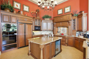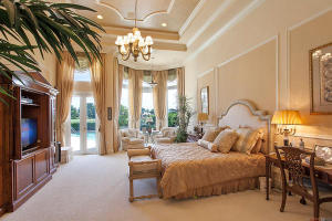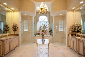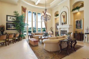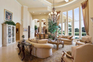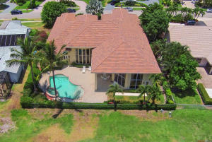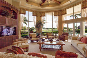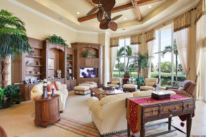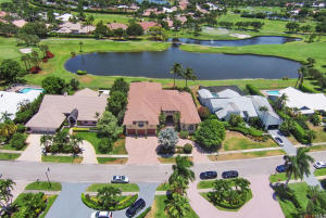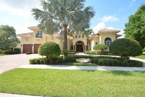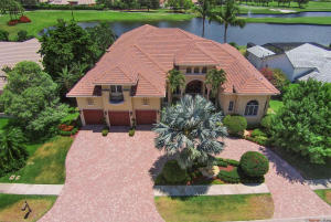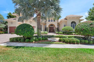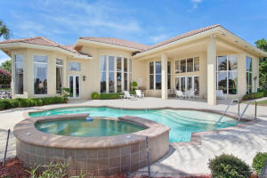 REDUCED & Seller will pay $48,000 toward club fees! Amazing trophy lot 5,369 foot one-story home with sweeping 180 degree views of golf and water overlooking the par 4 18th hole Joe Lee designed golf course. This custom elegant home with impact glass and full house generator was built in 2003 by Garcia-Brenner & Stromberg architects and built by Paramount. Impeccable home is one level with no elevation changes. The home boasts the finest finishes and best views including Jerusalem marble floors, custom millwork throughout, coffered ceilings, pecky cypress beams, chef's kitchen and huge master bath. From the moment you enter, the floor to ceiling windows capture Bocaire's finest views in the family, living and master bedroom. Custom office with elegant woodworking. See addendum for mor