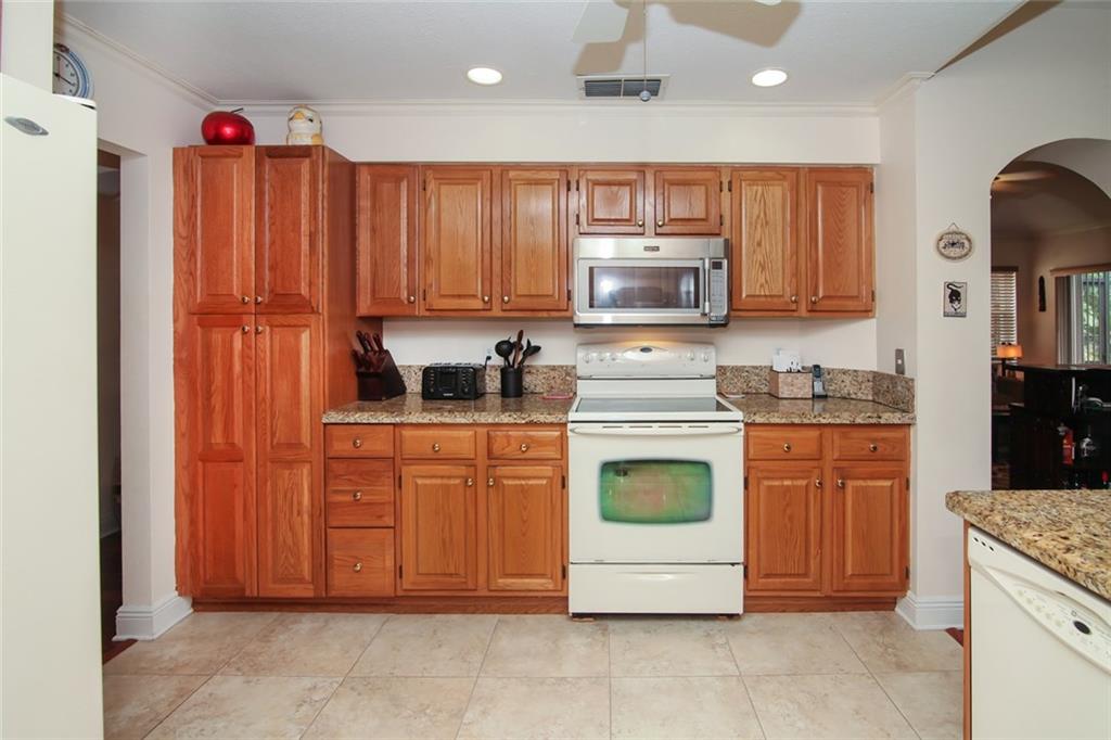 Gorgeous lakefront home in Forest Ridge. Completely updated featuring real wood floors, crown molding & deep baseboards. Kitchen has wood cabinets with granite countertops. Remodeled bathrooms with tasteful vanities, mirrors and frameless shower enclosure. Open kitchen with connected family room. Huge dining & living room with vaulted ceilings great for entertaining. Accordion hurricane shutters. Private backyard with screened in porch overlooking tranquil lake. A+ schools!