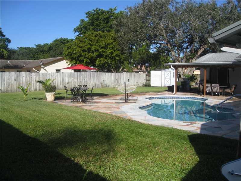 Stunning updated 4/2 pool home features split bedroom plan, completely tiled floors, updated kitchen w/ granite, newer SS appliances, snack bar, & pantry, Master bedroom has a large walkin closet & m bath completely renovated & hurricane door. This oversi zed corner lot is on a friendly cul de sac street. Backyard is completely fenced with a double gate on the side, 2 sheds, covered patio, & plenty yard to enjoy. Home has alarm system, oversized garage, hurricane shutters, & generator that hooks to breaker