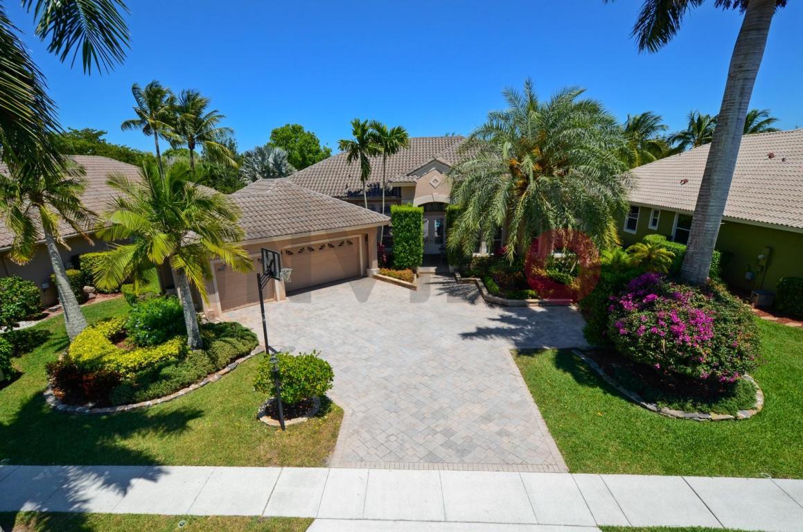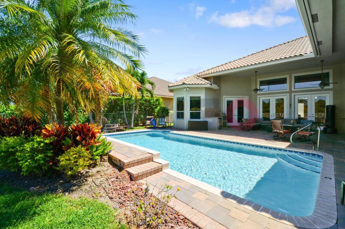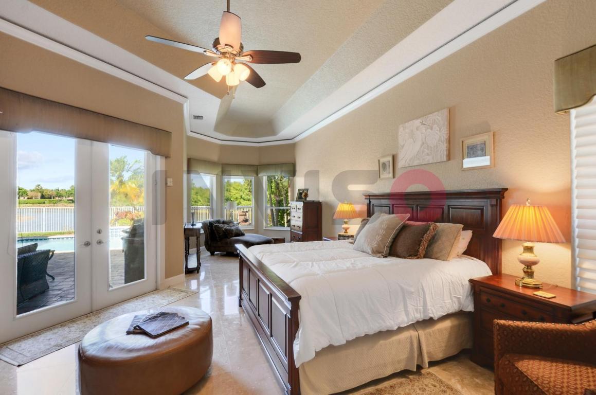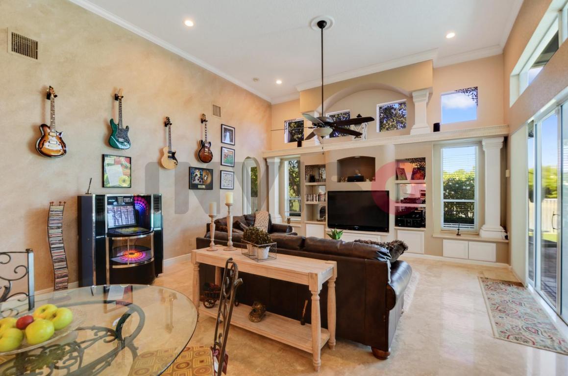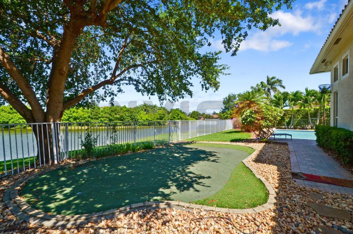 Beautiful 4/3.5 PLUS den HUGE home. Almost 3500 living SF Completely remodel in 2015. New kitchen, new bathrooms, travertine floors throughout, wood floors in 3 bedrooms, magnificant entry, 12' ceilings, kitchen has 42'' wood cabinets, granite, large island, lots of natural light, master bedroom overlooks pool & lake. Has 2 large custom built walk-in closets. Master bath is HUGE. Den has built in bookcase. Putting Green in the back. And many more amenities.