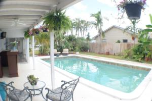Corner lot, sunny two story pool home with 2 master bedrooms.master bedrooms with private bath, walk in closet, cedar closet. corner landscaped lot 1/4 acre boasting 5 bedrooms 3 1/2 baths, tile, granite, formal dining, family room, sun room, new stainless steel appliances, wet bar by the pool, plenty of room for guests and entertaining. Fruit trees, big 2 car garage, mini workshop, circular drive with mature palms, CBS, hurricane shutters, move in ready with room for the whole family!