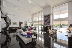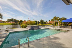 This extraordinary contemporary home is situated on a cul-de-sac on one of the largest lakefront lots in Boca West Country Club. It is located in the exclusive Oakbrook Village with it's own manned-gated security. This one of a kind home features a 2 story entry hall,4 bedrooms, 5 1/2 baths, spacious contemporary kitchen, media room, sumptuous extra large master suite, with two separate rooms off the master great for offices or an exercise room great room w/ 2 story floor to ceiling glass and custom bar overlooking pool, patio, waterfall and the lake. Huge panoramic loft area with spiral stairs overlooking a great room that includes a Murphy bed and full bathroom. Excellent value for such a prestigious location.