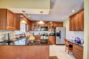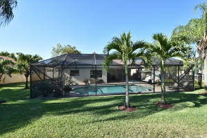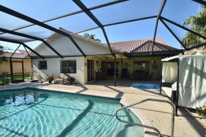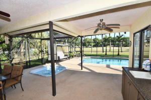 Charming 3 bedroom, 2 bath home situated on the 14th fairway in the desired community of Boca Greens. Chef's kitchen with granite counter tops, stainless steel appliances, snack bar, high hat lighting and a built in desk. Great room has tons of natural lighting and stunning views of the golf course. Master retreat has vaulted ceilings, walk in closets and two separate bathroom areas. This home also features a split bedroom plan, tiled flooring, vaulted ceilings, sky lights, covered patio, summer kitchen, screen enclosed pool, spa and a view of the golf course. move in ready! Boca Greens does not require country club membership. Located close to shopping, restaurants, A rated schools, major highways and the beach.