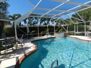 Spectacular Tropical Oasis Pool Home with Jacuzzi on over 3/4 of an acre lot. Perfect for Outdoor Entertaining, with high end salt water pool and 2 screened patios. Located in the gated community of Crescent Lakes with the largest lot, this private corner home, offers an upgraded chefs kitchen with updated appliances, granite counter tops and all the chef's bells and whistles. Enjoy an open floor plan with a Formal dining room and casual breakfast area, in this lovely two bedroom/2 bath home.(Review attached floor plan where 3rd bedroom/den wall was removed, it can be put back)A perfect nook for a Baby Grand Piano, comfortable bar or office. This spacious home can even hold an 8'x 4' Pool Table. All Landscaping & 280'of Fichus hedges are maintained by the HOA providing total privacy.