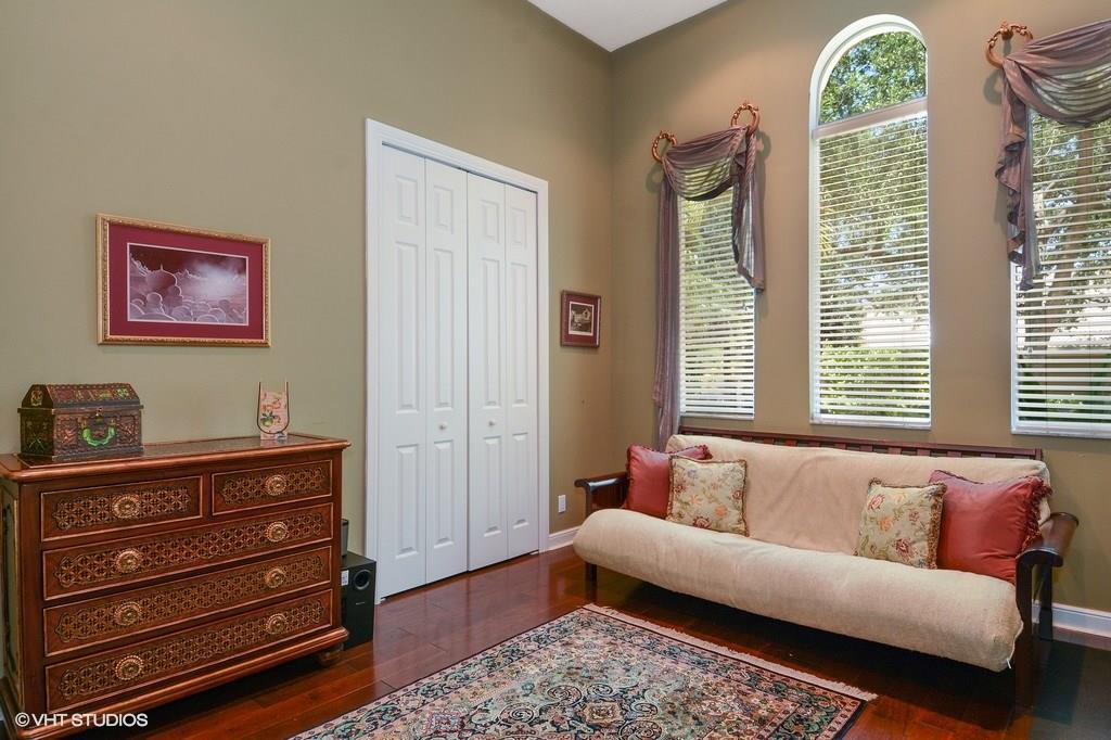 Stunningly elevated and nestled in a hammock of oak trees in Hollywood Oaks, this home greets you with 14 and 17 foot ceilings and over 3200 sq. ft. of luxury upon entering. Floor plan includes four bedrooms, fourth is optional den/office. Secluded master's quarters feature vaulted ceilings, walk-in closets and Onyx vanities. Open living areas - kitchen, living room, breakfast, formal living room - filled with natural light. Oversized lot with private yard; no house to the rear! Pool and three car garage.
