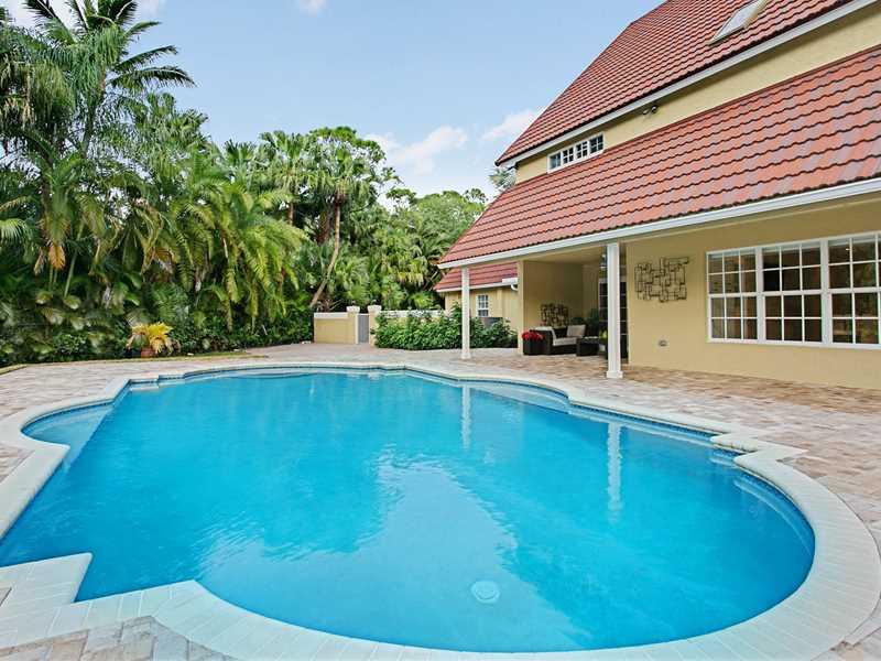 Spectacular Pine Tree! Remodeled custom 4 BR, 3 Bath estate with 2 car side-entry garage. Custom modern kitchen w/ top-of-the-line Miele, SubZero and Wolf Appliances and a sleek master bedroom and bath suite that must be seen! Custom closet built-ins, w/ designer finishes throughout. Soaring 2nd floor ceilings. All bathrooms redone. New 50 yr. roof in 2006, impact windows and doors, newly remodeled pool and deck area in huge back yard w/ over 1 acre of land.
