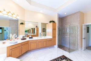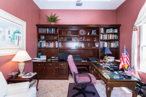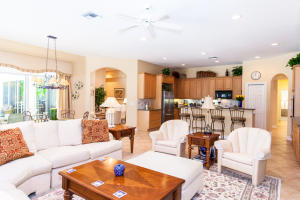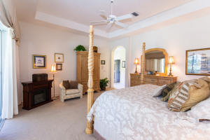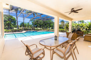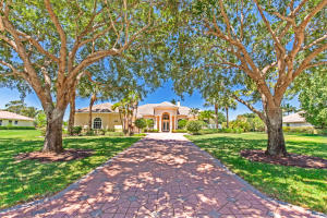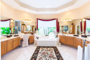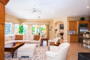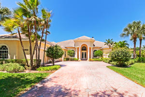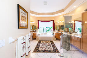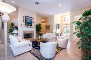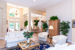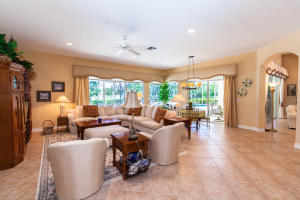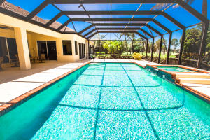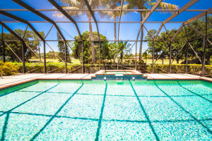 Spacious 5 BR home with office on 1 acre estate lot with panoramic golf & water views. Oversized 36' heated pool & jacuzzi with newer screened enclosure.Elegant living room with fireplace leading to open maple kitchen with 42'' cabinets and dbl. ovens overlooking spacious 25' family room. Large 18' master bedroom with 2 walkin cloets and elegant master bath featuring jacuzzi tub, frameless glass shower and dbl. vanities. Large 3 car garage with finished epoxy floor. 1 Ac is new and 1 is 3 years old both with sanitizing UV lights.Office/library features a custom cherry wood built in. Jandy pool system and elec. pool heater. Impact window film on most windows. Home is hooked up to county water
