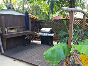 This 1940's bungalow boasts many unique features and truly is a must see! The 2-bedroom / 2-bathroom home features Dade County pine floors, tongue and groove solid wood walls and ceilings, renovated bathrooms, working fireplace and a Florida room with open beam ceiling, floor to ceiling windows and sliding doors that open to the wood deck. The tropical landscaping is the star of the home with 3 massive Sea Grapes, 30-foot bamboo, mango tree, a variety of palms and smaller foliage accenting the yard with river stone and coquina sand ground covering. The fully fenced yard features a concrete patio, two wood decks, full size shed and room for a pool. Other upgrades include a new electric panel, new copper and pvc plumbing, natural gas for water heater, dryer and stove and a newer A/C.