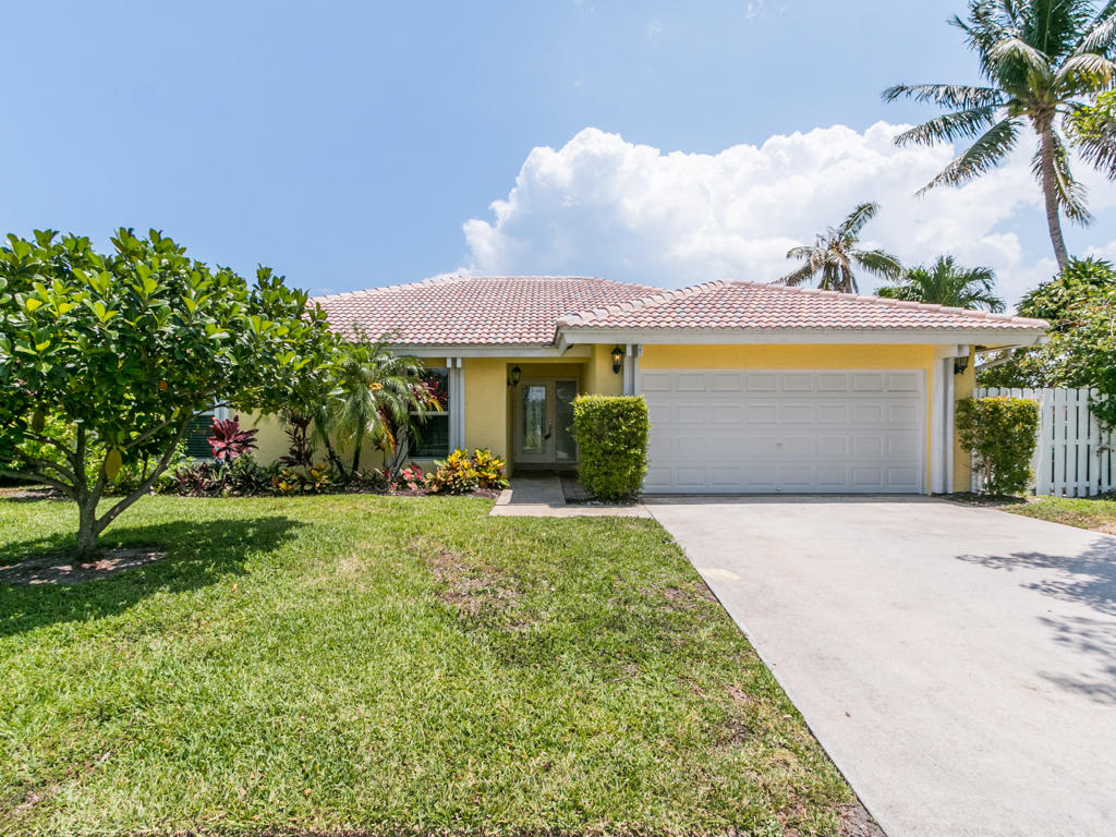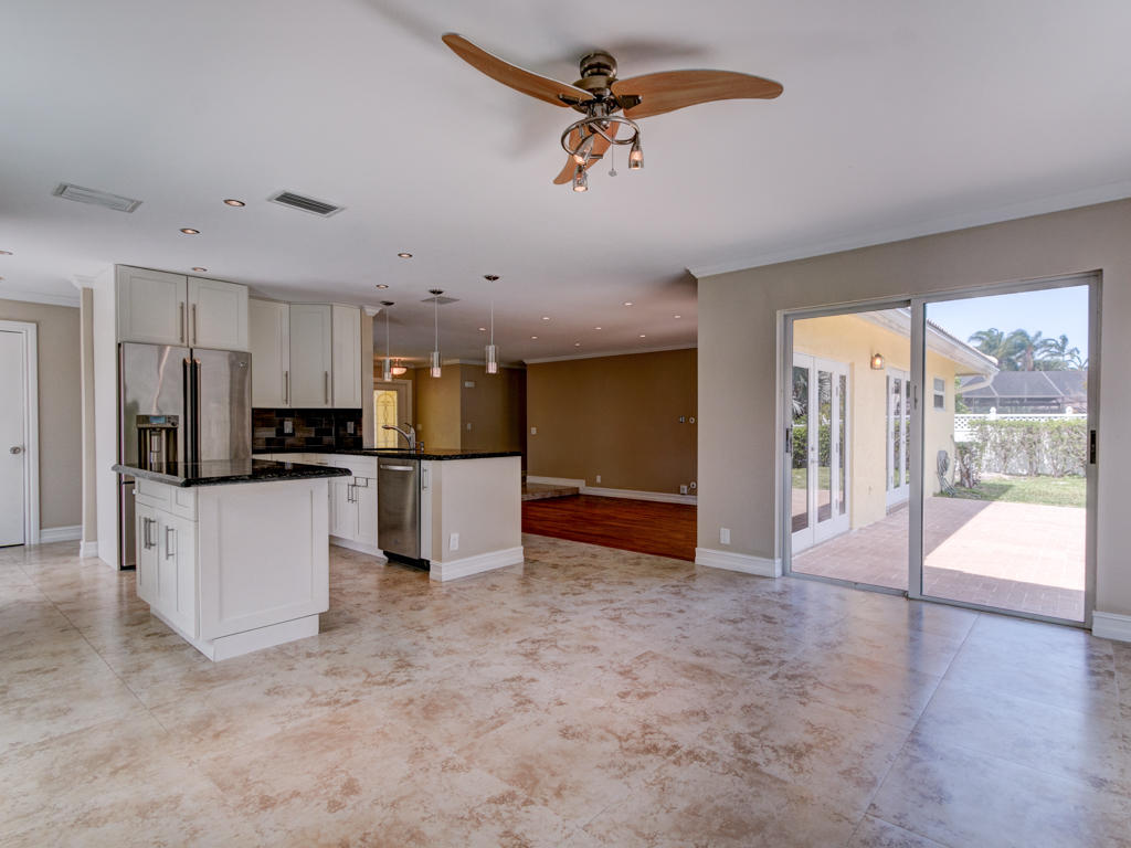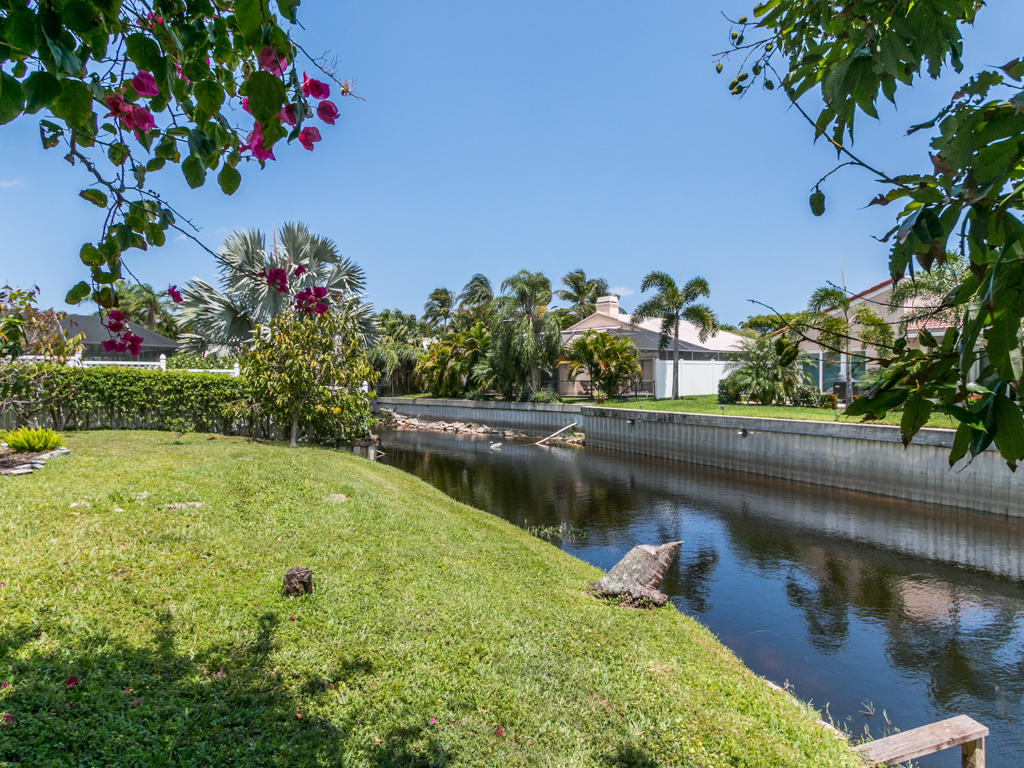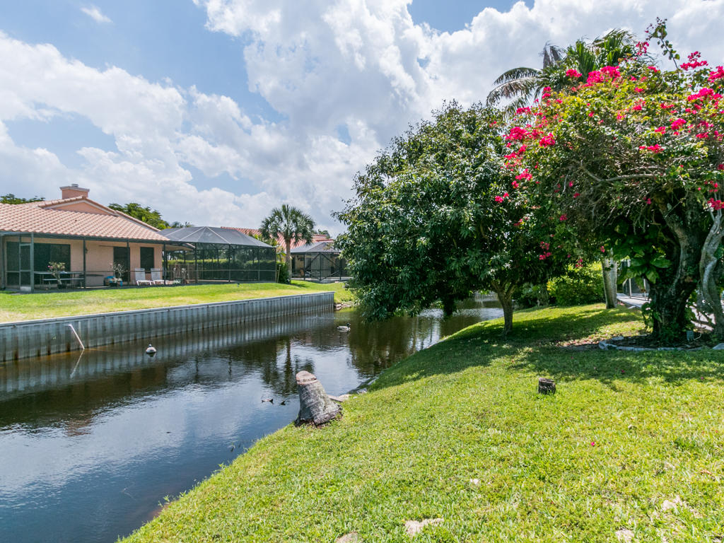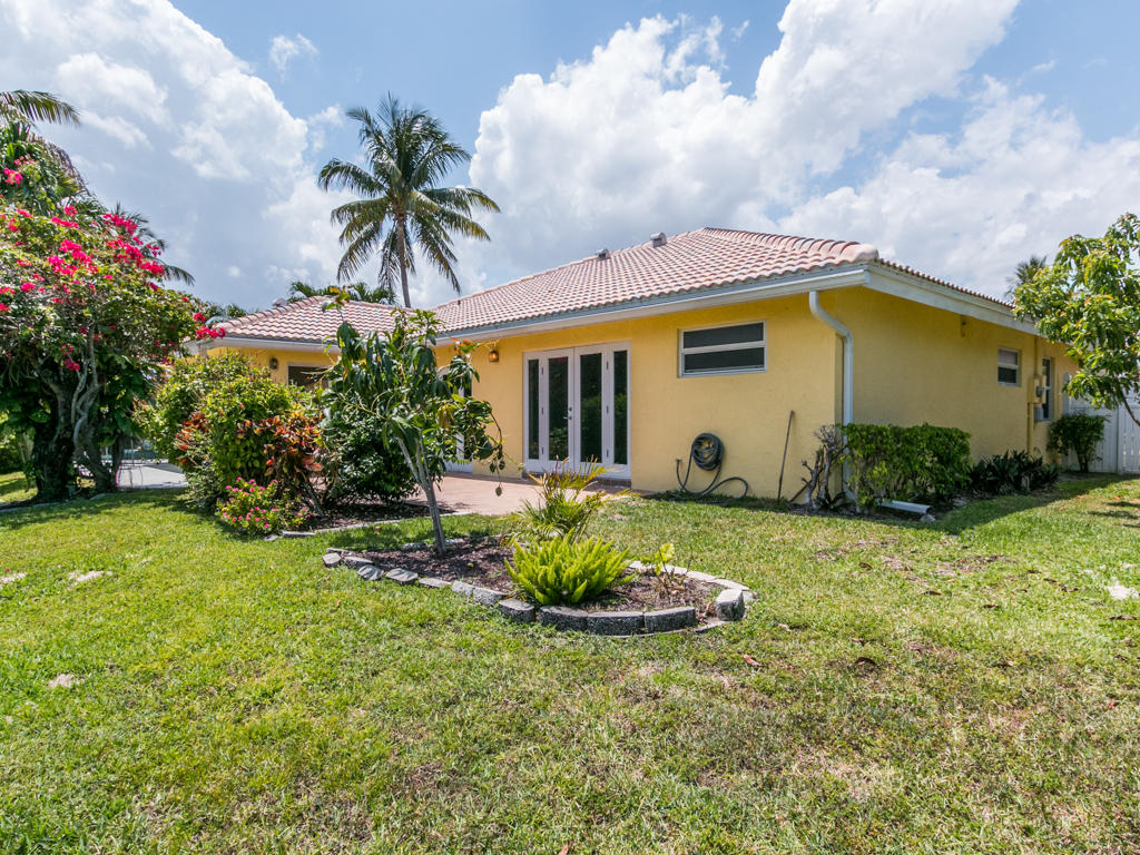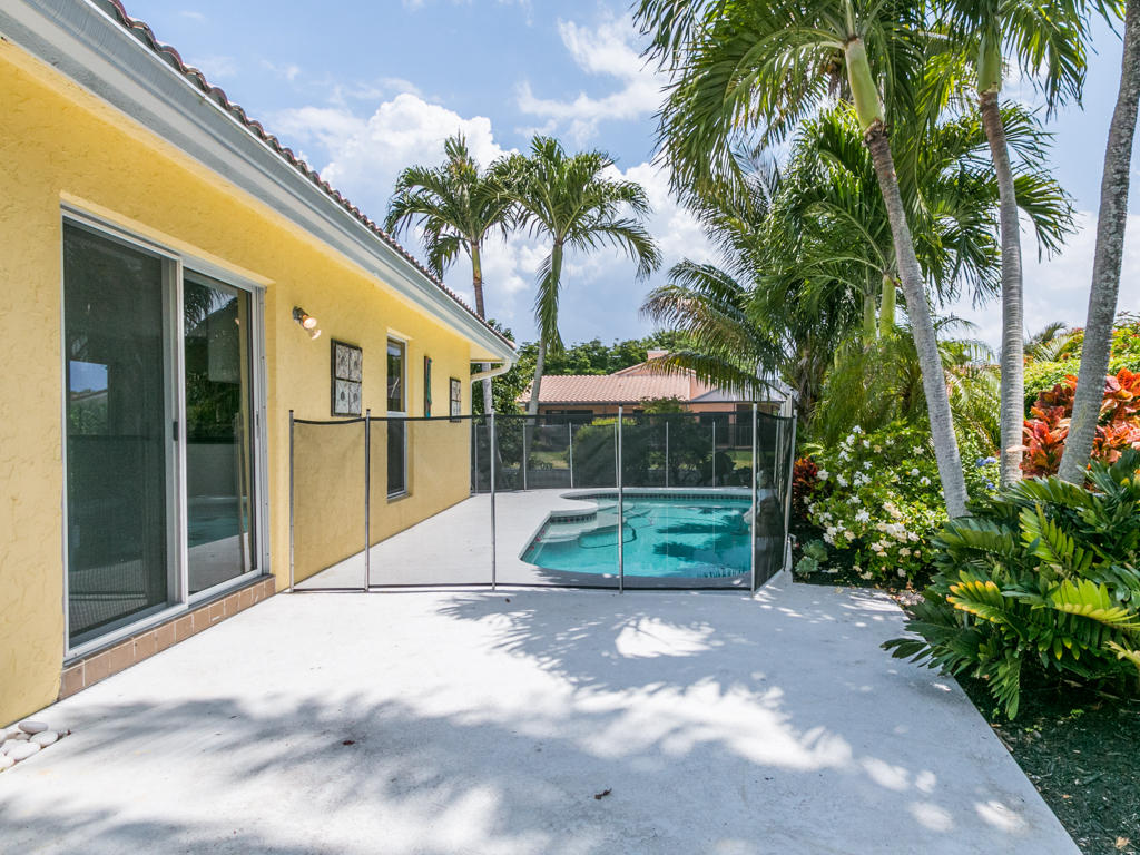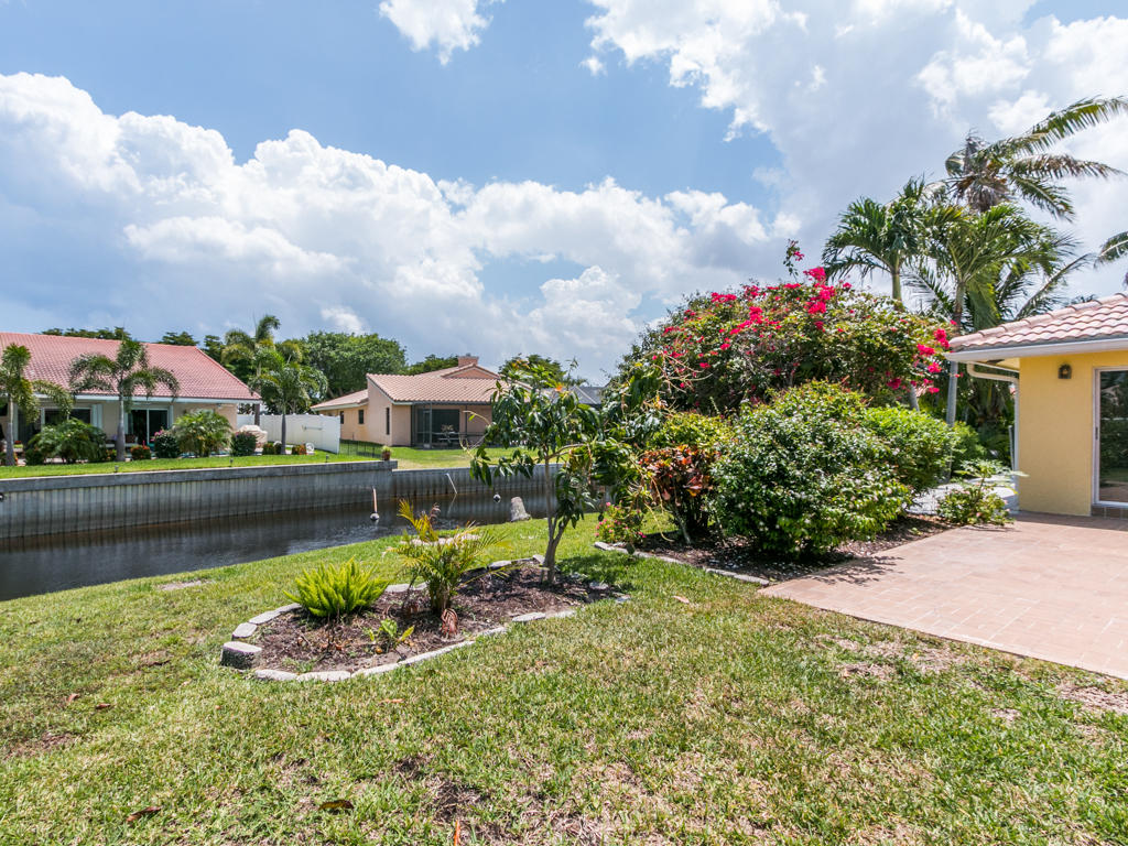 This freshly painted one-story home with 3 bedrooms, 2 baths, and a 2-car garage in east Boca Raton with a large canal facing backyard offers superior updates including newer tile/wood flooring and chef's renovated kitchen in 2014. All flooring, appliances, and cabinetry were upgraded. The kitchen features modern white cabinets with a sleek backsplash, quartz countertops, stainless steel appliances and pendant lighting. The bedrooms also have newer dark wood flooring and totally updated modern bathrooms. Updates also include air conditioning (2011-2012), Hot water heater (2013), hurricane-rated garage door (2015), roof (2011) and impact windows (except for sliders). The private back yard features many fruit trees and a tranquil salt-water pool. A true beauty and move-in ready!