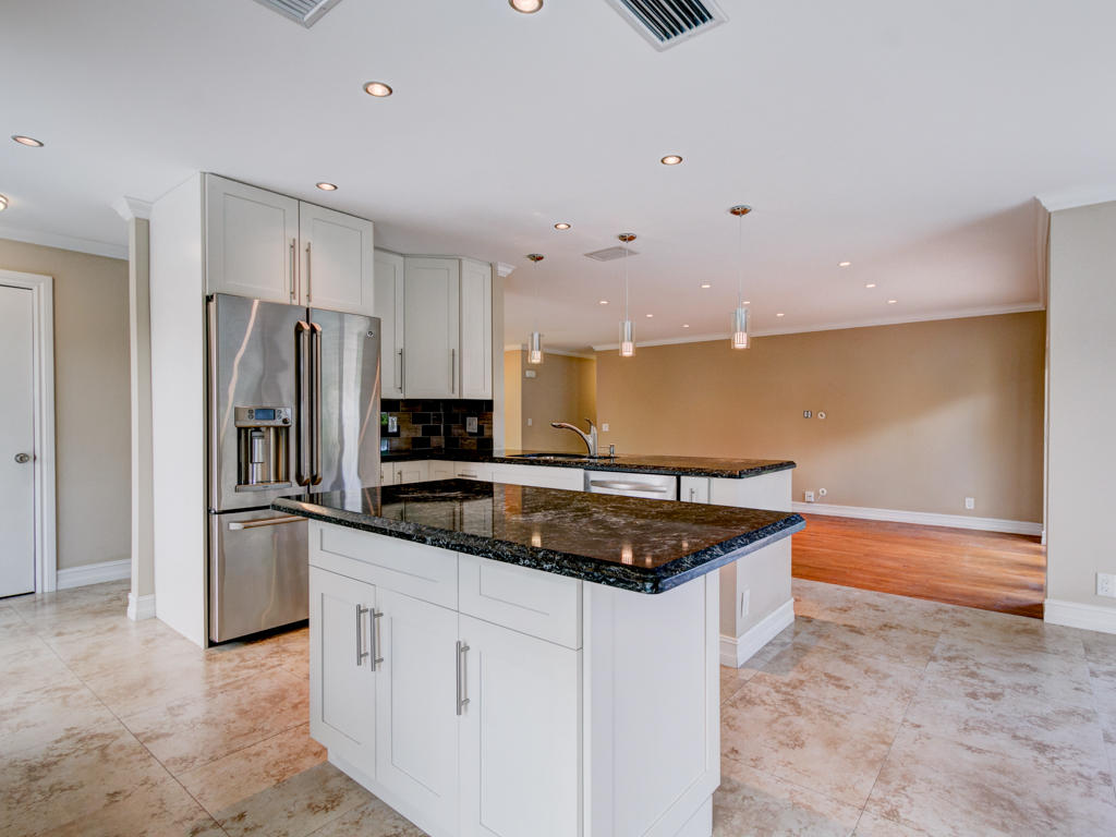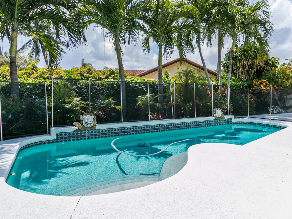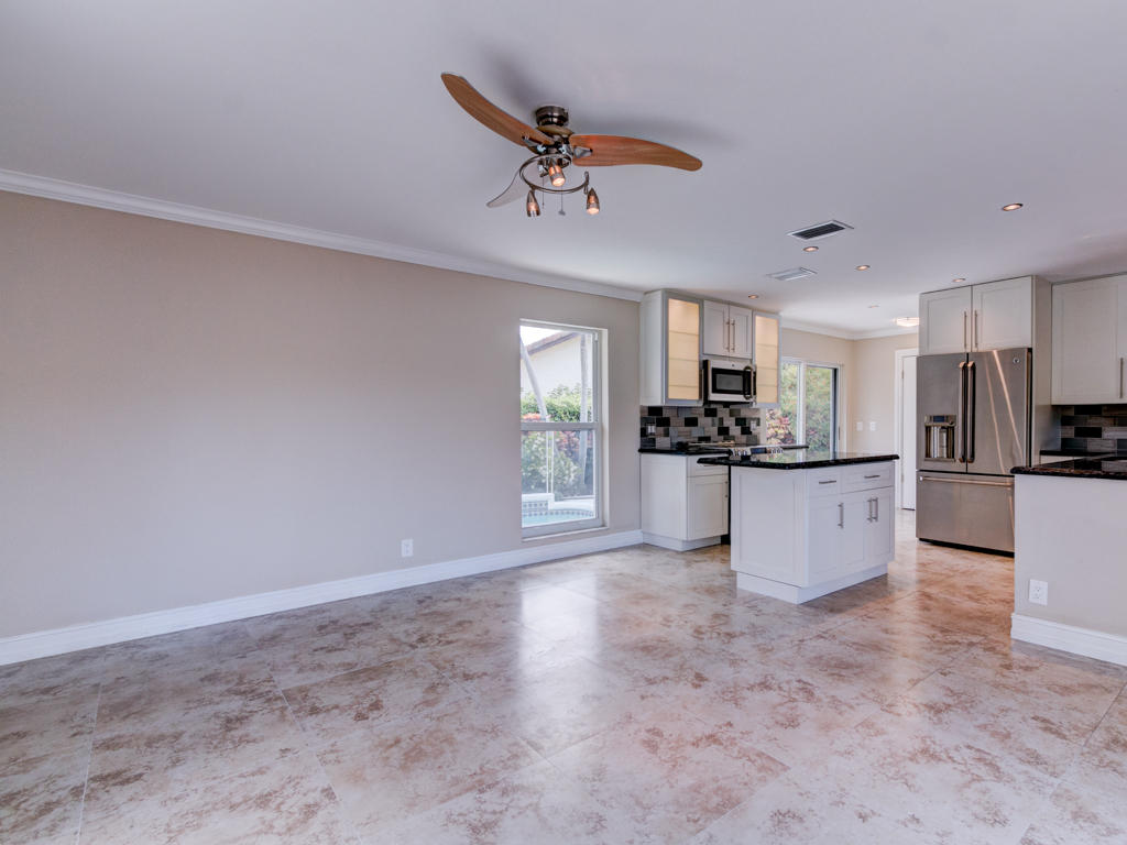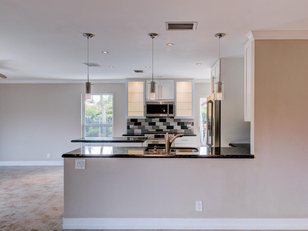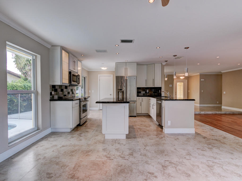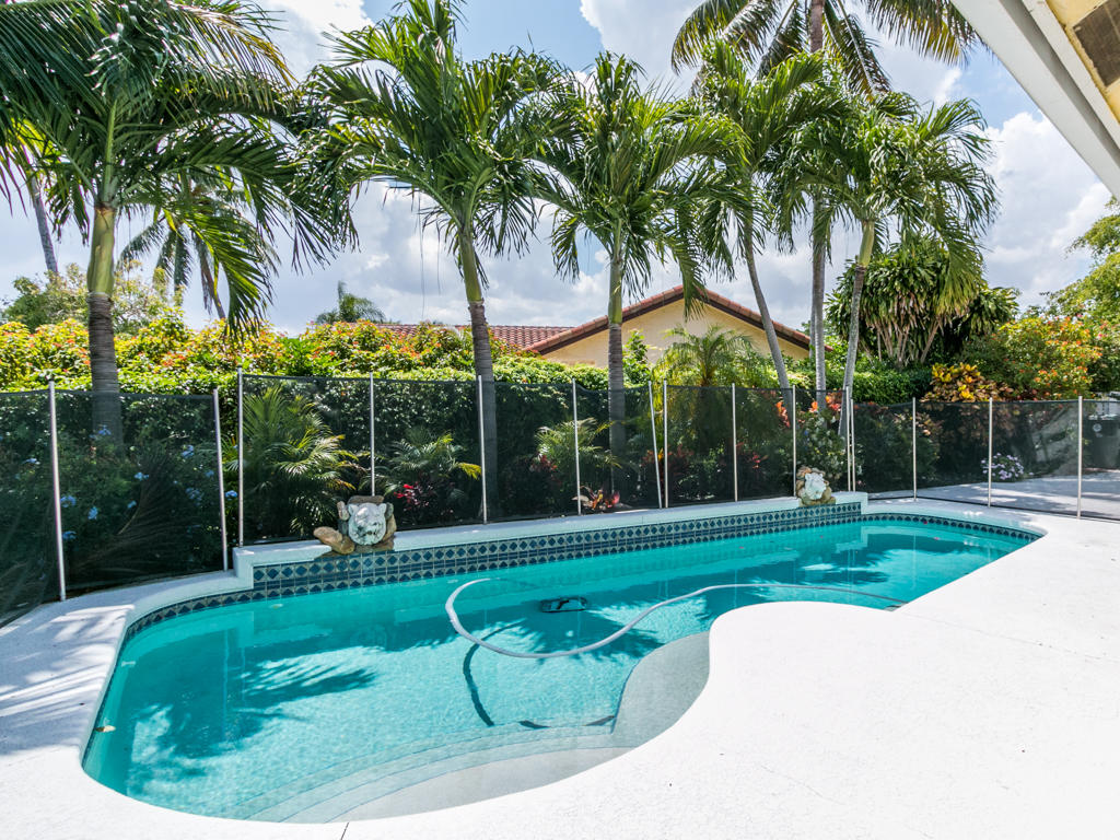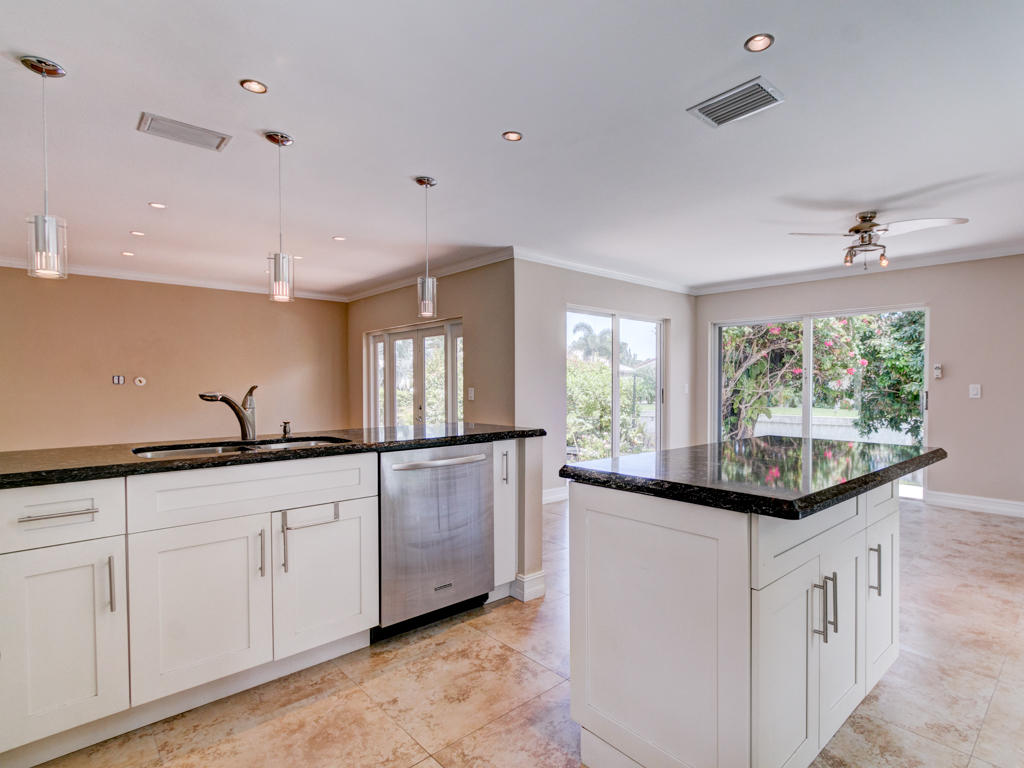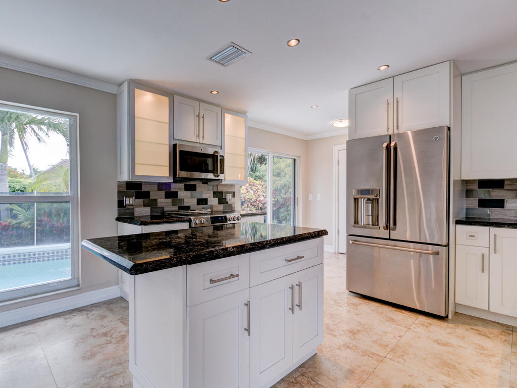 This freshly painted one-story home with 3 bedrooms, 2 baths, and a 2-car garage in east Boca Raton with a large canal facing backyard offers superior updates including newer tile/wood flooring and chef's renovated kitchen in 2014. All flooring, appliances, and cabinetry were upgraded. The kitchen features modern white cabinets with a sleek backsplash, quartz countertops, stainless steel appliances and pendant lighting. The bedrooms also have newer dark wood flooring and totally updated modern bathrooms. Updates also include air conditioning (2011-2012), Hot water heater (2013), hurricane-rated garage door (2015), roof (2011) and impact windows (except for sliders). The private back yard features many fruit trees and a tranquil salt-water pool. A true beauty and move-in ready!