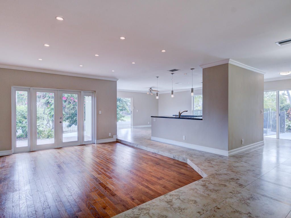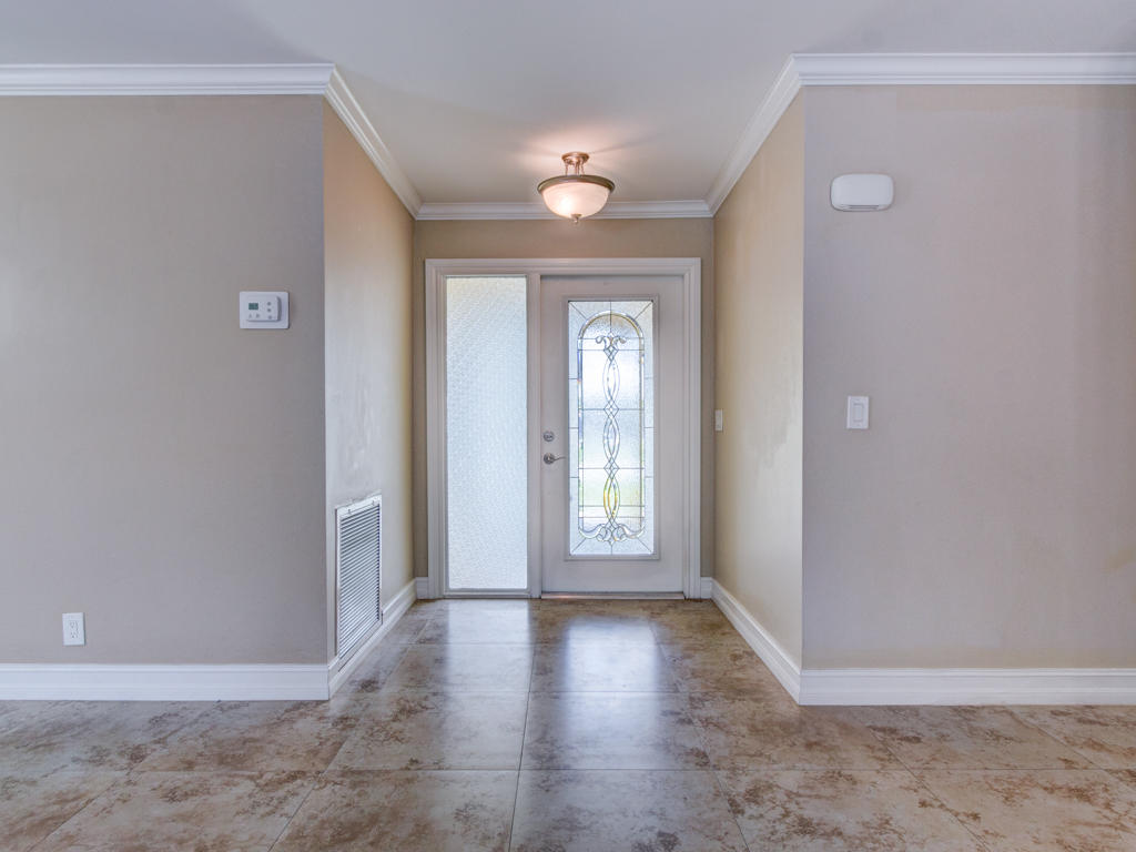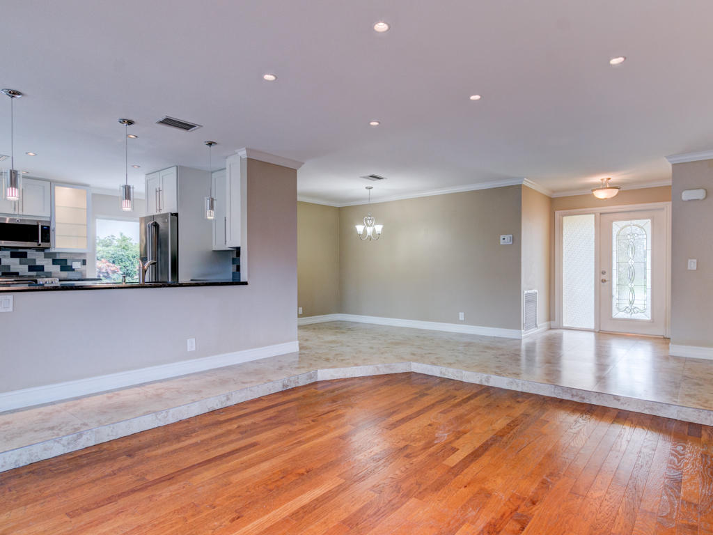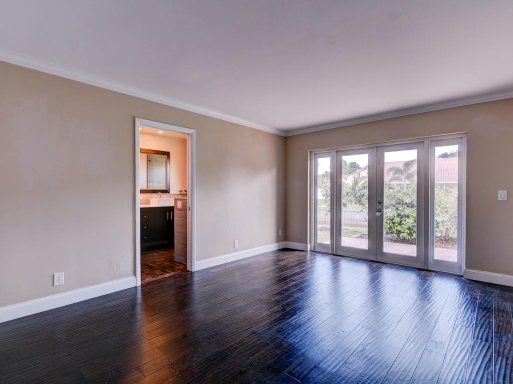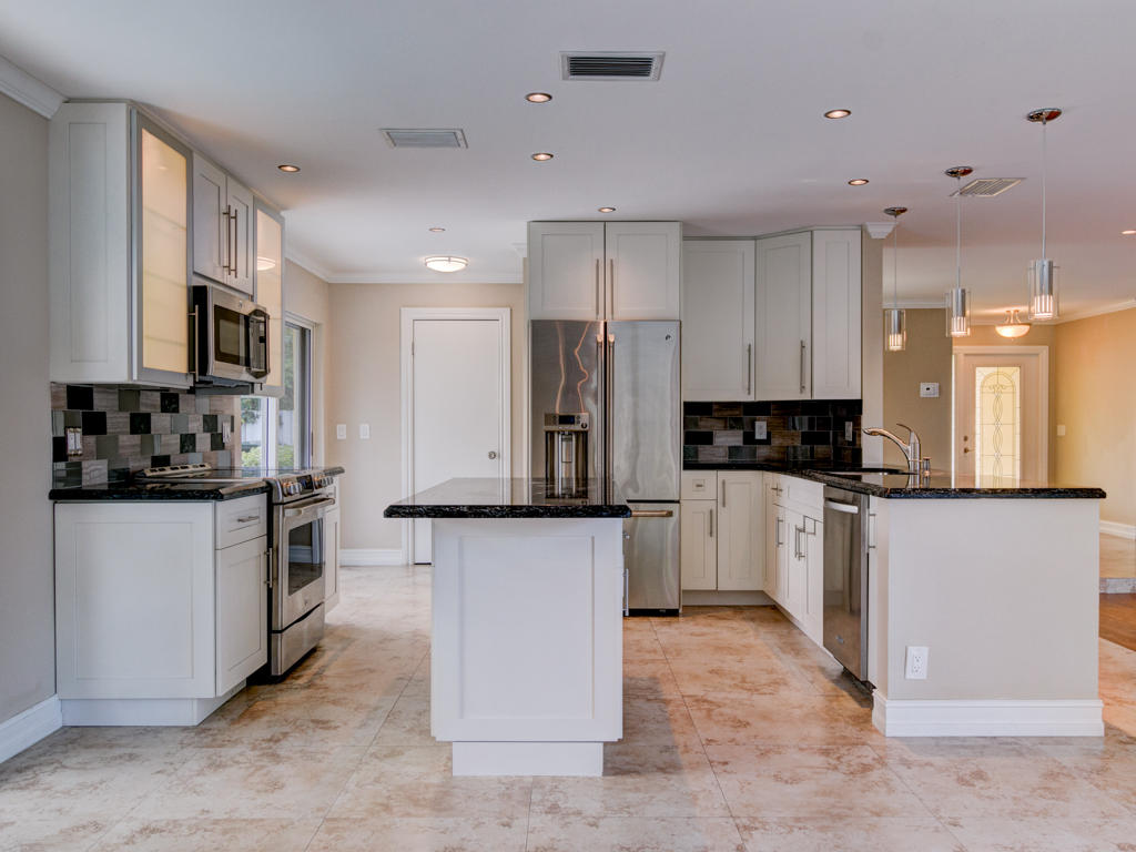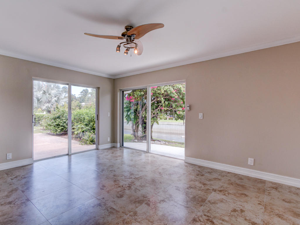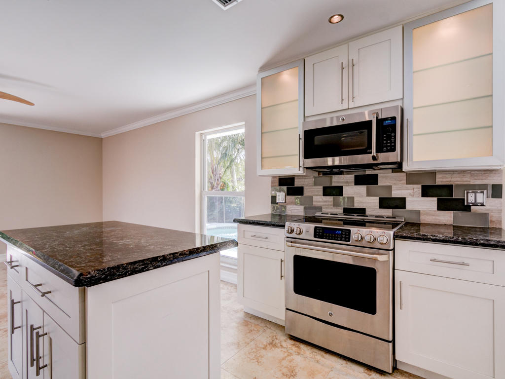 This freshly painted one-story home with 3 bedrooms, 2 baths, and a 2-car garage in east Boca Raton with a large canal facing backyard offers superior updates including newer tile/wood flooring and chef's renovated kitchen in 2014. All flooring, appliances, and cabinetry were upgraded. The kitchen features modern white cabinets with a sleek backsplash, quartz countertops, stainless steel appliances and pendant lighting. The bedrooms also have newer dark wood flooring and totally updated modern bathrooms. Updates also include air conditioning (2011-2012), Hot water heater (2013), hurricane-rated garage door (2015), roof (2011) and impact windows (except for sliders). The private back yard features many fruit trees and a tranquil salt-water pool. A true beauty and move-in ready!