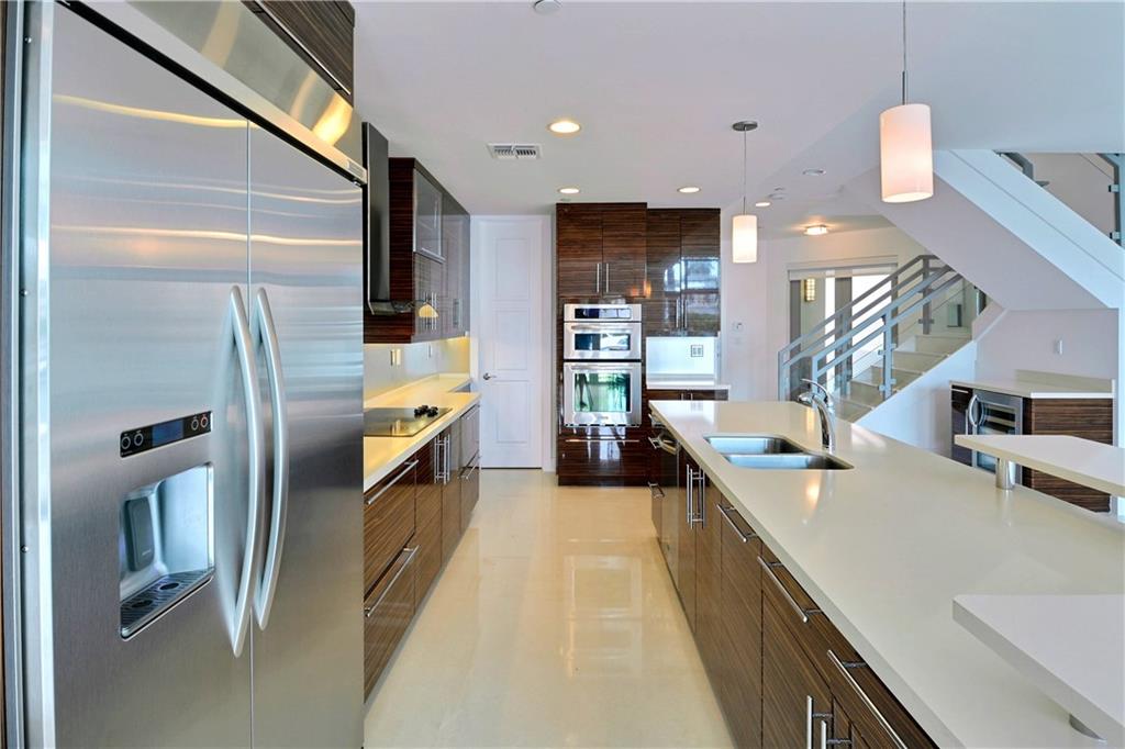 Deep waterfront town home inspired by contemporary architecture. Private dock for a boat up to 35' & fully equipped power station. Unparalleled standards of luxury are exhibited throughout with the use of Limestone & wood flooring, large open culinary kitchen with Zebra wood cabinetry, upgraded stainless steel appliances & Silestone counter tops. Bright open floor plan, 2 story great room, elevator, large 2nd floor loft area, multiple balconies, roof top terrace & waterside patio. sq. ft. from developer.