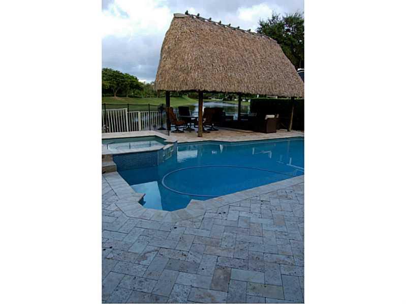 GORGEOUS LAKEFRONT 4 BEDROOM 2.5 BATH + HIDDEN BONUS ROOM. HEATED POOL & SPA. CUSTOM 22X14 TIKI HUT ON HUGE TRAVERTINE DECK- LONG LAKE VIEWS IN CUL-DE-SEC IN GATED COMM. COMPLETELY UPDATED HOME FEATURES 24" TRAVERTINE MARBLE THROUGOUT FIRST FLOOR. GOURM ET KITCHEN W/ 42" WOOD CABINETS -- CUSTOM LIGHTING. GRANITE THROUGHOUT W/ BUILT-IN SEATING FOR 6. ALL STAINLESS STEEL APPLIANCES- 42" BUILT-IN REFRIGERATOR & DOUBLE OVENS. WOOD FLOORS- STAIRS, MASTER & HALLWAY. ALL BR'S HAVE CALIFORNIA CLOSETS.