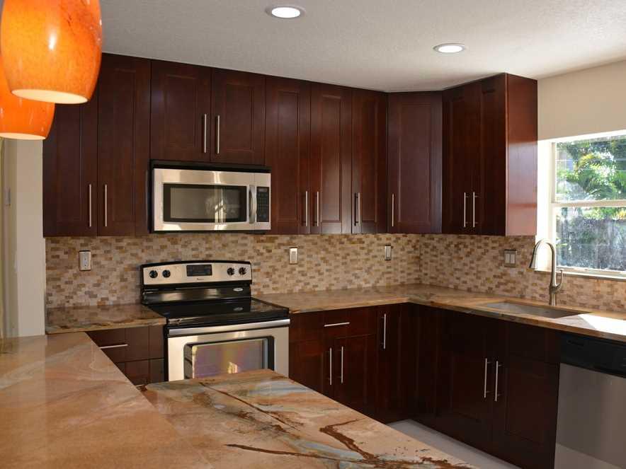 Totally remodeled home located in well sought Riverland features high end kitchen with granite counter tops, SS appliances, modern travertine back splash, 42" real cherry wood cabinets. Breakfast area. Family room. Wood floors in bedrooms & European porc elain tiles throughout. Fully remodeled baths with tank less water heater. Baseboards, fans ,fixtures, sprinkler system, landscaping, driveway. Plenty of room for a pool and more! Brand new roof & huge fenced yard. Everything is Brand New!!