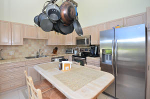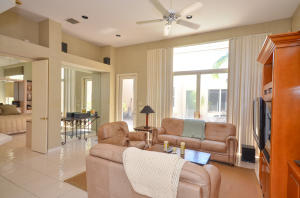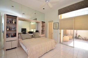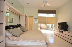 3 bedroom, 3 1/2 bath courtyard home looking out on the beautiful golf course of Boca Country Club, a club with no mandatory membership. The main house has 1 bedroom and 1 1/2baths with the living room fronting on the pool. The kitchen and dining room face the golf course. The house has high ceilings,tile throughout, and newer stainless steel appliances.The guest house on the other side of the pool has 1 bedroom and 1 bath. Above the garage there is an apartment with 1 bedroom and 1 bath. Located minutes to I-95.
