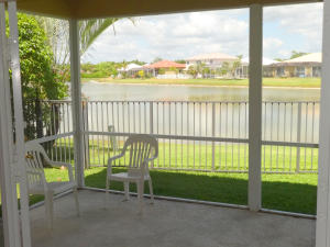 Beautiful 3 bedroom waterfront home with stunning panoramic views. Water the sunsets over the lake from your covered screened patio. Immaculate, bright and spacious. Fence yard with room for a pool. Kitchen with stainless refrigerator. Master bath with granite counter tops and high end whirlpool sitting spa/tub. This home has all HURRICANE IMPACT WINDOWS, AC 2008, Paver Driveway. Low water bill. Water feeds off lake, security system, Walk or bike to 3 ' A ' rated schools. Will go fast!