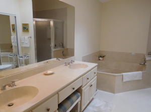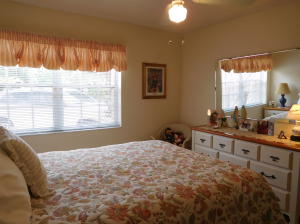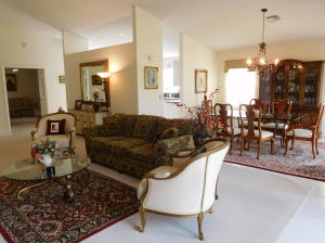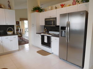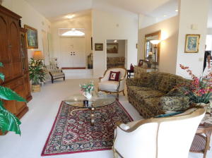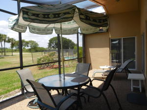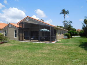 Beautifully updated 3BR/2BA Spanish Mediterranean Aspen model home with panoramic golf course views located in a gated community. Interior features double entry doors, vaulted ceilings, wall-to-wall carpeting and ceramic tiles. Great room concept in living area. Bright & updated kitchen with white cabinets & stainless refrigerator & microwave. Master Bedroom features walk-in closet & sliding glass door. Master Bath features dual sinks, Roman tub and separate shower stall. Screened covered rear patio. Hurricane rated 2 car garage door. Interior windows are tinted for hurricane protection. Community gate, remodeled social clubhouse with fitness room, 2 pools, hot tub, tennis courts, basketball/handball. Houses/driveways are painted every 7 yrs. Hotwire Fiber Optic cable TV/Internet included.