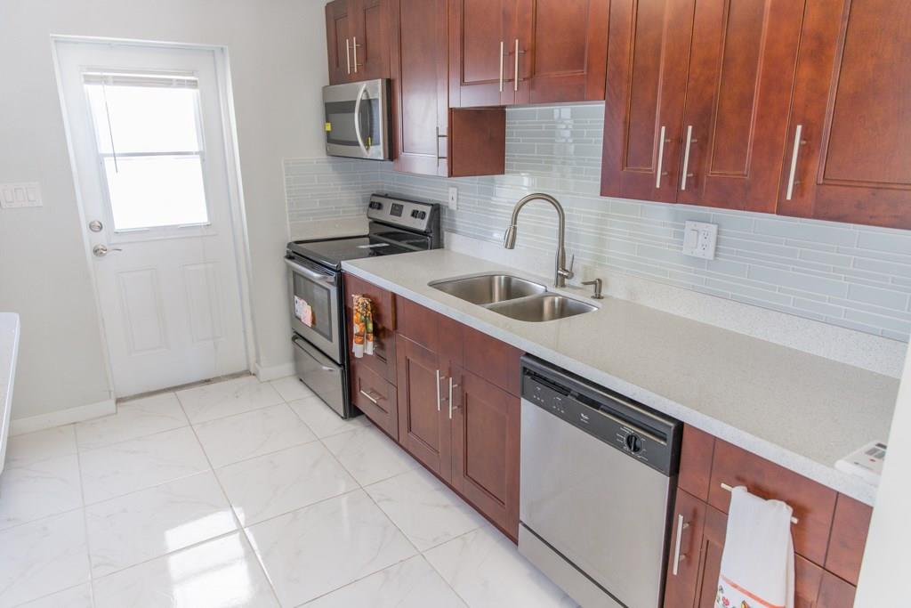 Fantastic Opportunity! This home features new stainless steel appliances; Quartz countertops, Glass tile back splash, New tile throughout, New walnut cabinets, completely new toilets, vanities, tile in the bathrooms with glass tile inlay. All New: Porch, Accordion hurricane shutters, Exterior shed on concrete pad, Sprinkler system, Air conditioning system handler & compressor, Wired high speed cable and Internet, Insulation, Roof, Light fixtures, Fence, new sod & landscaping. Great Location!