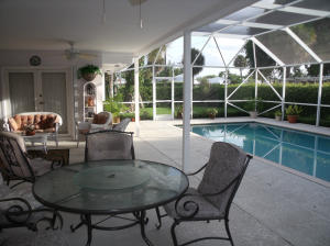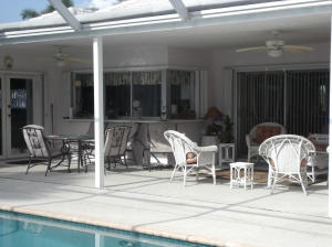 Immaculate, Light, open spacious 3 bedroom 3 full bath split plan, Pool home. Large light Ceramic tile in living areas, laminate wood flooring in two front bedrooms, Newer equipped kitchen w/Granite countertops, open to lg. familyrm. with French doors out huge covered patio & screened pool. Accordian hurricane shutters, extra storage room, very private rear & side yards. Seller is licensed Real Estate Broker