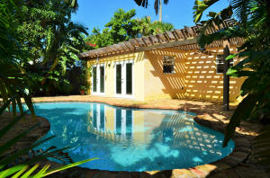 This beautiful 2 story 1925 Spanish Mission style home in Historic Belair has a commanding front entrance with elegant garden fountain. 3 bedrooms and two full baths a den and spacious Florida Room with wet bar. Hardwood floors, pecky cypress doors, wrought iron and old world architectural moldings. Outdoor second floor deck, cast stone fireplace. Chef's kitchen with six burner dual fuel range and cabinet depth refrigerator. Wood cabinetry and silestone quartz counter tops. Out back is a free form pool surrounded by chicago brick. The guest house has a living room, 1 bedroom 1 bath and kitchenette. A stunning arbor by guest house and pool for outdoor eating and entertaining. This home is located in a great neighborhood steps away from Flagler Drive and intracoastal waterway.