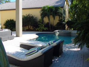 Located on a quiet cul-de-sac, this lovely 2-story home of 4 bedrooms & 3 1/2 baths is light, bright & open featuring volume ceilings; neutral tile,hardwood & laminate floors; a remodeled kitchen with white high-gloss cabinetry with roll-outs, granite countertops, glass-finish appliances & a charming breakfast nook; built-in Living Room bar; built-in Family room entertainment center; glass & stainless steel banister; remodeled Master & secondary bathrooms; custom window treatments; custom closet design; newer water heater, washer & dryer; a totally private inviting back yard offering a covered lanai, an open area with a heated pool, extensive landscape design & plenty of sun plus so much more!