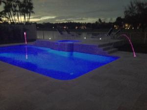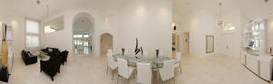 Completely remodeled in 2013: new roof, new impact windows and sliders throughout, impact garage door, impact skylights with remote controlled electric shades, 24in. marble flooring set on a diagonal throughout, custom kitchen and all bathrooms, 2 new a/c units, all new Decora switches and outlets, whole house water filtration/softener system, and LED high hats throughout home. Kitchen features include a 48in. stainless steel refrigerator, warming drawer, and custom glass breakfast bar. Stunning lake and golf view with new retractable awning, custom landscaping, and marbled backyard with sun deck. New pool filter and heater. New diamond brite and tile in pool/spa with LED lights and lighted laminars. Underground propane tank in front yard can be used for BBQ grill in backyard