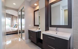 Gorgeous & completely renovated home. Three bedrooms plus den, spacious open floor plan, light and bright kitchen features large island quartz countertops, with sitting, stainless steel appliances, custom cabinets, under mount sink beautiful backsplash, the home has stunning porcelain floors throughout. Beautiful upgrades, bar service area with double wine cooler. Large master suite with remolded master bathroom with double sinks, frameless shower door. The outdoor area is perfect for entertaining, oversize patio with heated pool & spa, and beautiful new landscaping