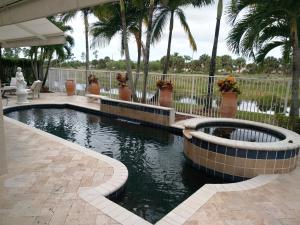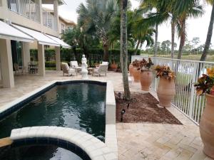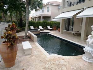 Must see this one of a kind gorgeous home containing $25,000 in custom upgrades by current owner. Heated Pool, spa, lake, golf and amazing western sunset views from patio and balcony. Lush foliage in a private yard. Decorative brick paver driveway and walkway lead to beveled glass double entry doors. Front doors open to a grand foyer, 23 foot ceilings and elegant curved wrought iron staircase. Living areas are accented by crown molding and floor tile laid on diagonal. Decorative columns flank the formal dining room entrance. Kitchen counters and full backsplash are granite material. Appliances are stainless steel. Kitchen has abundance of cabinet storage plus a walk-in pantry. A bedroom on the 1st level has been converted to enlarge the family room.