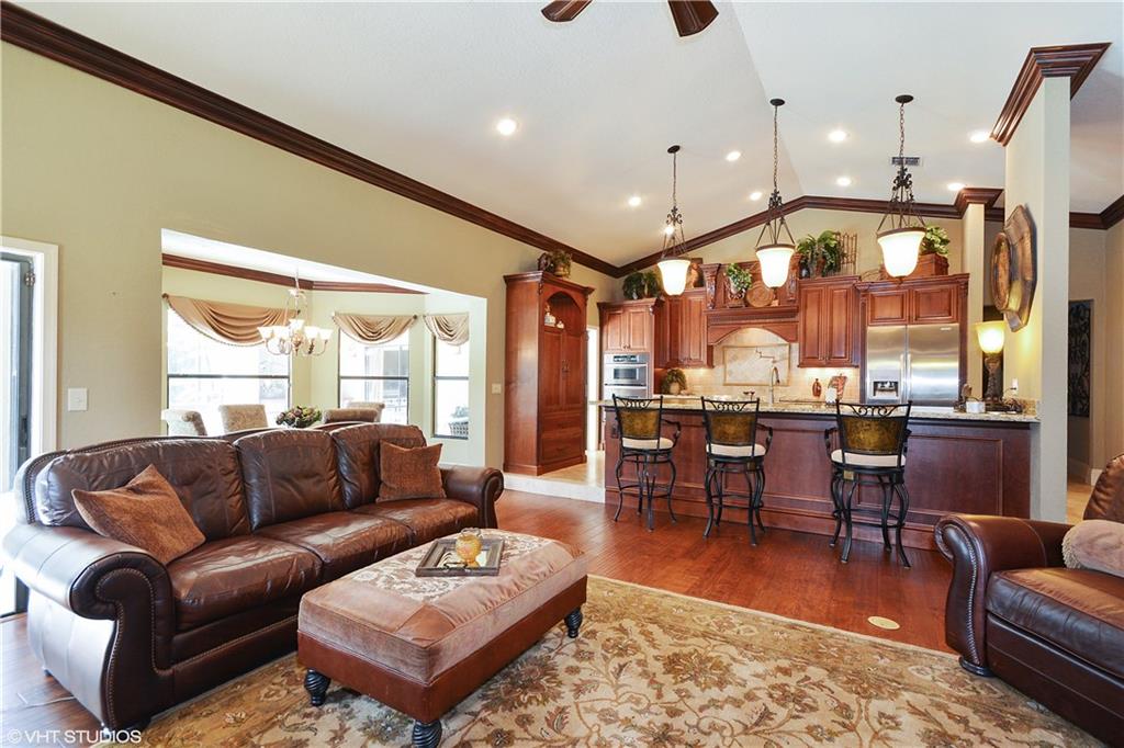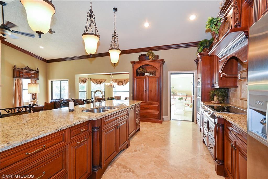 If you snooze you'll lose this one! Elegant, warm and inviting as soon as you step into the foyer. Features include: custom sconces, chandeliers, warm lighting, marble and distressed wood floors, all bathrooms completely updated, gourmet custom kitchen, furniture style cabinets and pantry, big island, SS appliances, updated master bath with Jacuzzi tub, lush tropical landscaping, circular drive. Walk to A-rated elem, guard gated community with full amenities: new clay tennis, exercise, pool, clubhouse