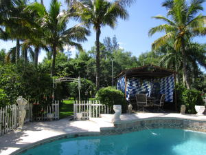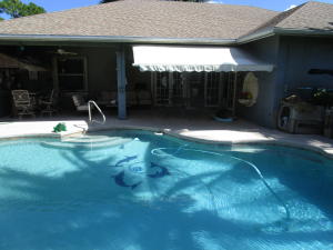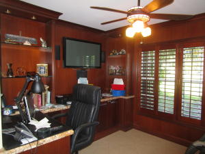 All measures appx. Awesome home with many upgrades. 3 bedrooms,an office with built-in granite top desk and cabinets, built-in speakers, wine cooler, heated pool with colored light feature, accordion hurricane shutters, workshop, security system, fenced yard with remote controlled gate, paved driveway all the way back to workshop, gazebo, grill area, shed with a/c. Master and guest baths have dual sinks and spa tubs. Kitchen has granite countertops, breakfast bar and eat-in area with view of pool. Family room has built-in 70'' TV and speakers that will remain.