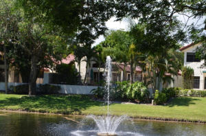 Fantastic sought after gated community in the heart of Boca Raton adjacent to Boca Town Center. 2BR/2BA home with lake view has open floor plan with vaulted ceilings. Formal dining room can be den or office. Spacious living room has a fireplace and newer custom cabinet. Beautifully renovated kitchen has custom stained wood cabinetry, stainless steel appliances and granite countertops