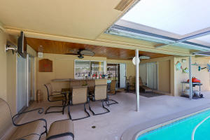 Don't miss opportunity: move-in ready, updated, 3 bed, 2 bath home on corner lot in highly desirable Boca Raton Square. Two bedrooms are combined to form a giant master suite - easily made back to 4 bed (now set up as 3 bed). Interior improvements include granite kitchen countertops, chic white cabinets, updated baths with onyx countertops, tile in main living areas, carpeted bedrooms, excellent split-bedroom layout with lots of closets. Home features tile roof, solid CBS construction, pool, cypress-wood ceiling covered patio, w kitchen access perfect for entertaining. Garage modified to increase laundry room size, one car fits nicely. Gated Boat/RV parking. Enjoy Boca Raton's best school districts, proximity to parks, beaches, restaurants, shopping & easy access to 95.